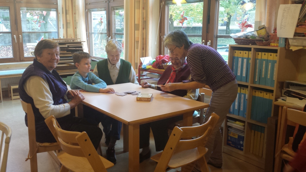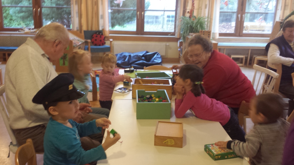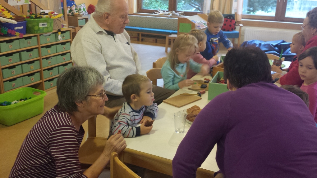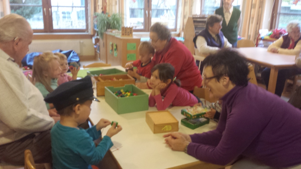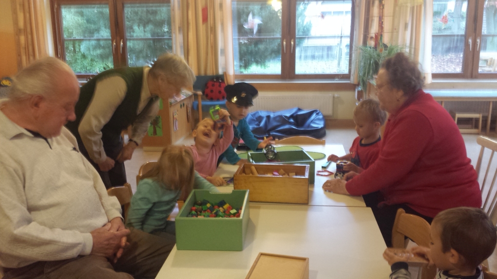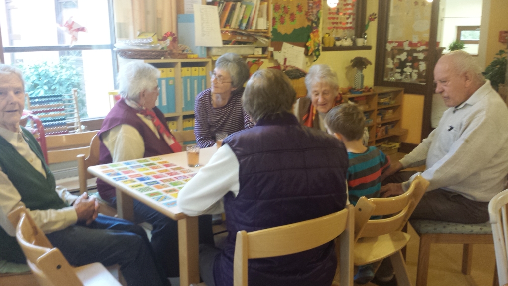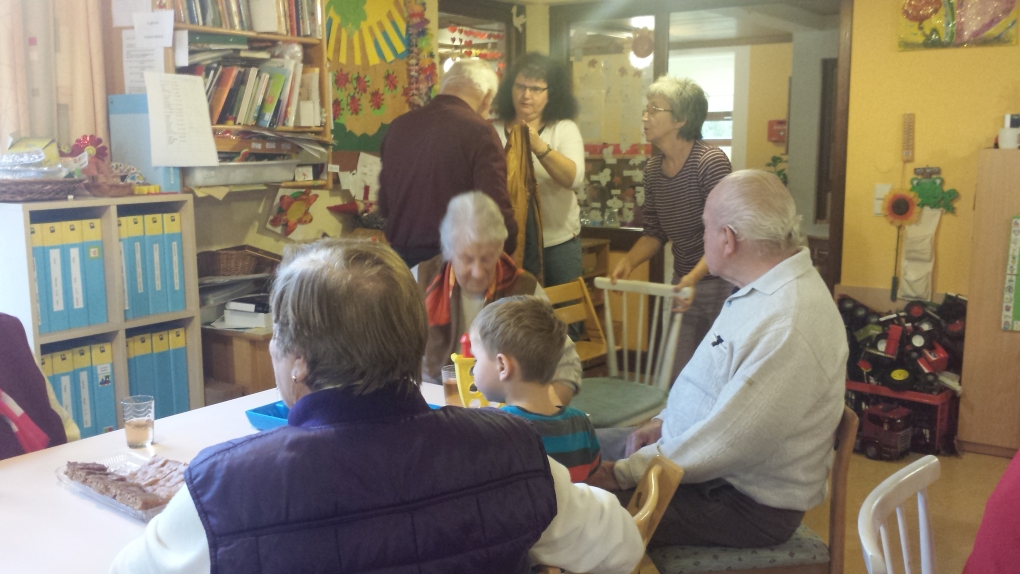 Nach der Sommerpause freuten sich schon alle, klein und groß, auf den Besuch der BewohnerInnen des Betreuten Wohnens im Kindergarten.
