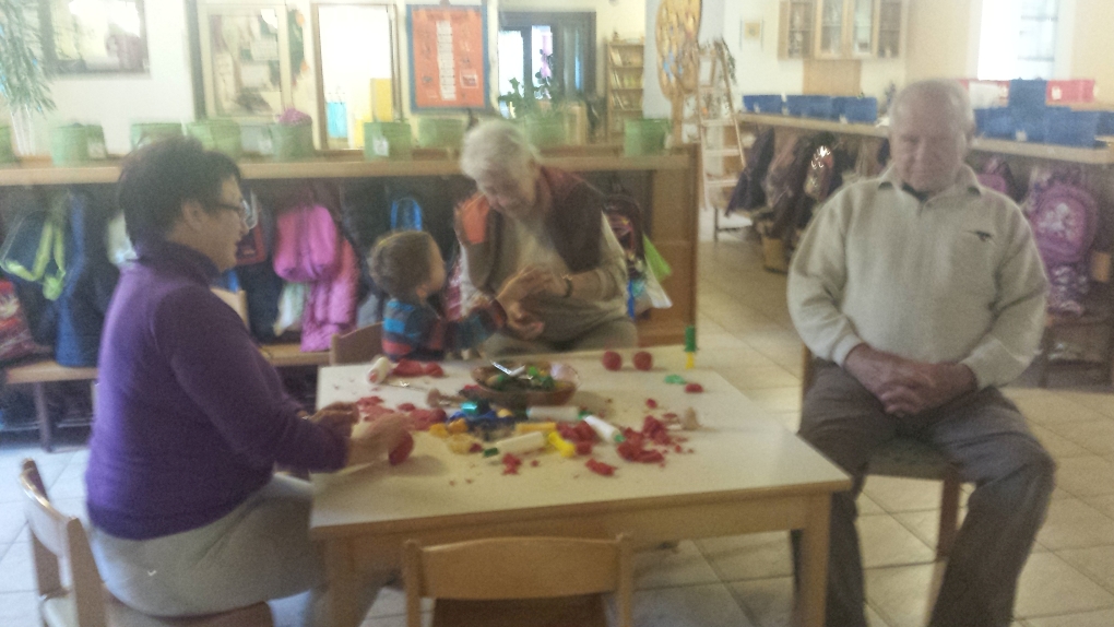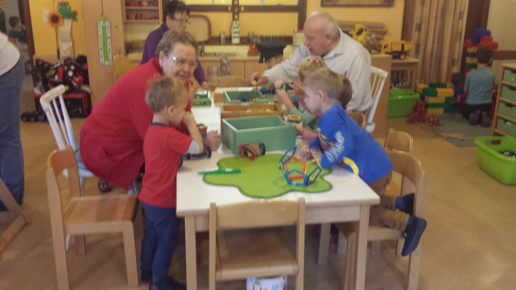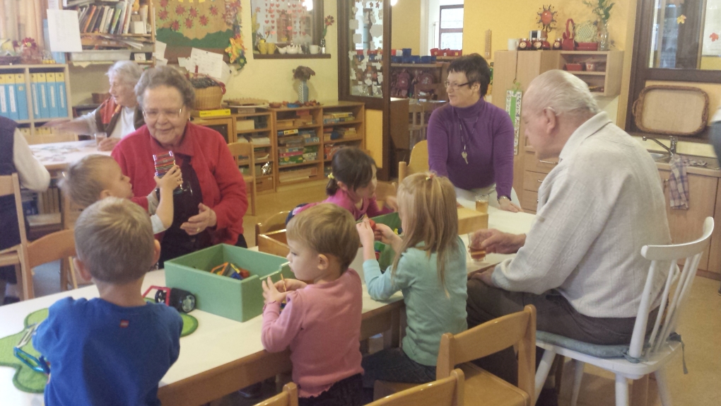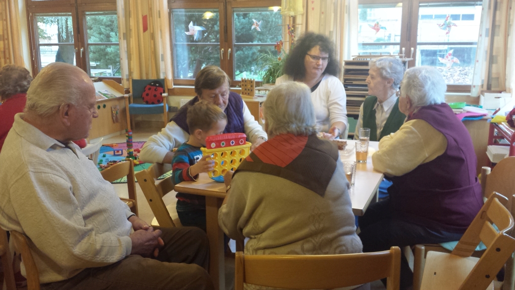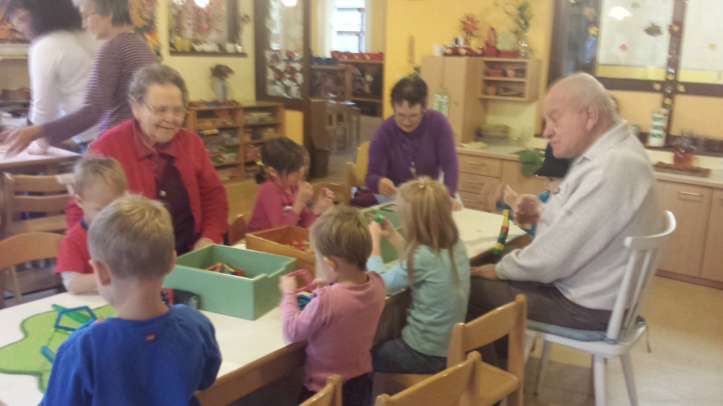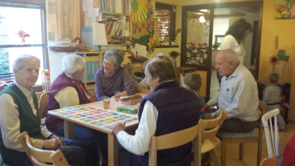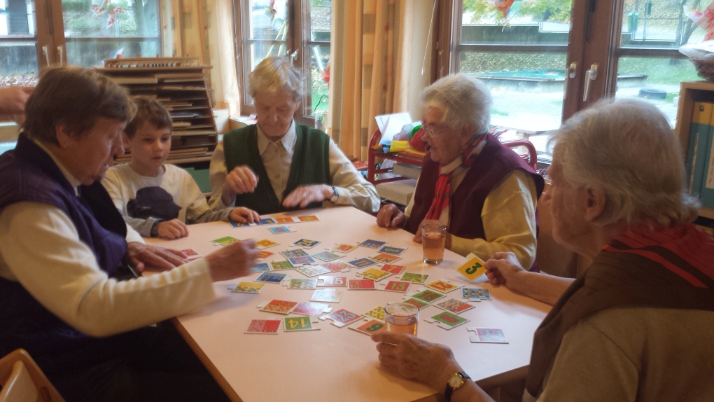 Nach der Sommerpause freuten sich schon alle, klein und groß, auf den Besuch der BewohnerInnen des Betreuten Wohnens im Kindergarten.