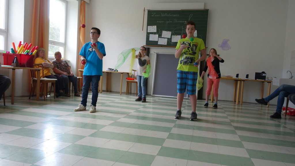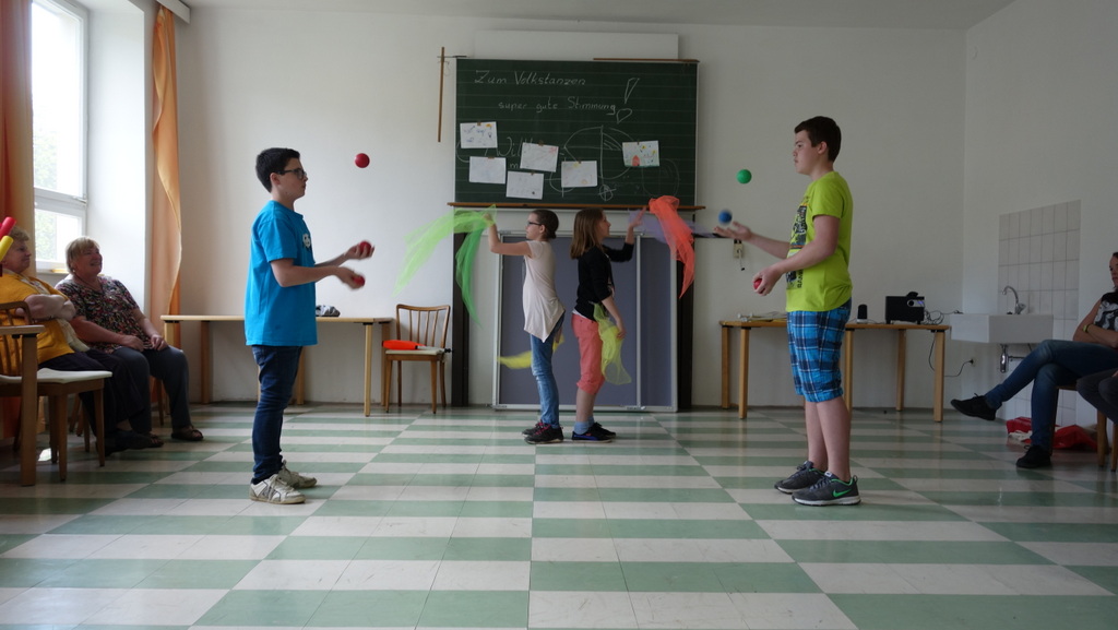 Beim "Letzten Mittwoch im Monat Treff am 29.4.2015 in der alten Schule in Kettenreith ging es nicht nur mit Frau Maria Brauner musikalisch zu, es kam auch die Firmgruppe "Redlingshofer, Winkler" zu Besuch. Lena Redlingshofer, Anna Wiesendorfer, Samuel Winkler, Philip Scherhammer und Elisa Heindl bereiteten mit ihren Instrumenten und Jonglieren große Freude!
