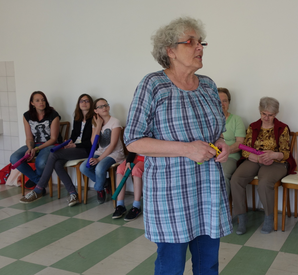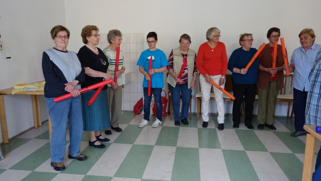 Mit den Boomwhackers, Musikinstrumente aus der Gruppe der Idiophone, die aus unterschiedlich langen Kunststoffröhren bestehen, die harmonisch aufeinander abgestimmt sind, ergeben sich beim Schlagen der Boomwhackers, gegeneinander, auf den Boden, den Körper oder jede beliebige Oberfläche unterschiedlich klingende Töne. Und das klang bei uns gar nicht schlecht!!