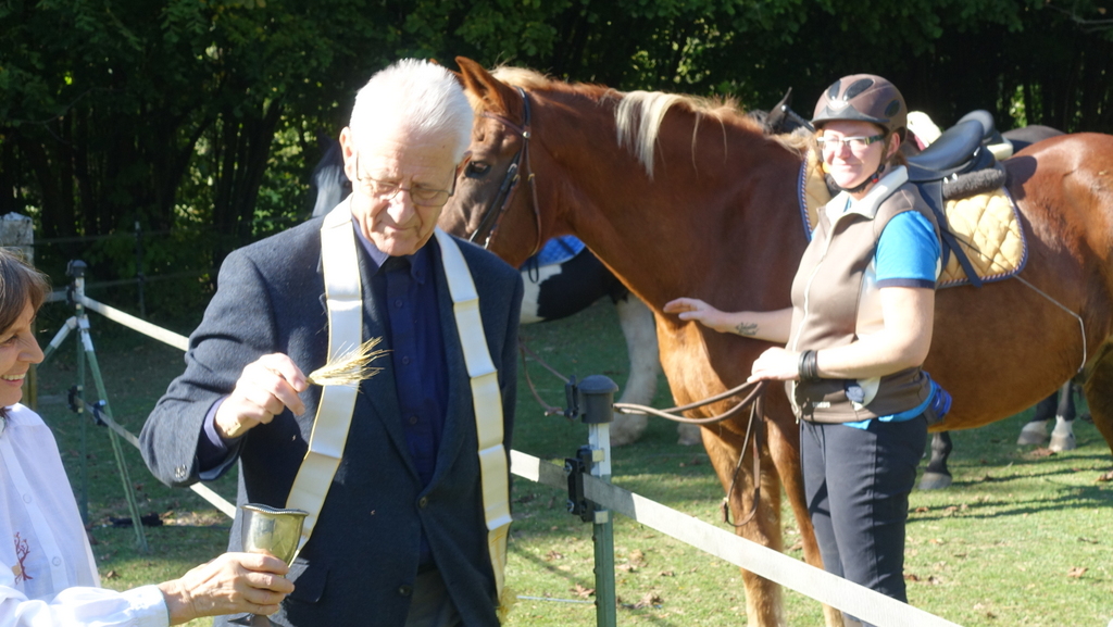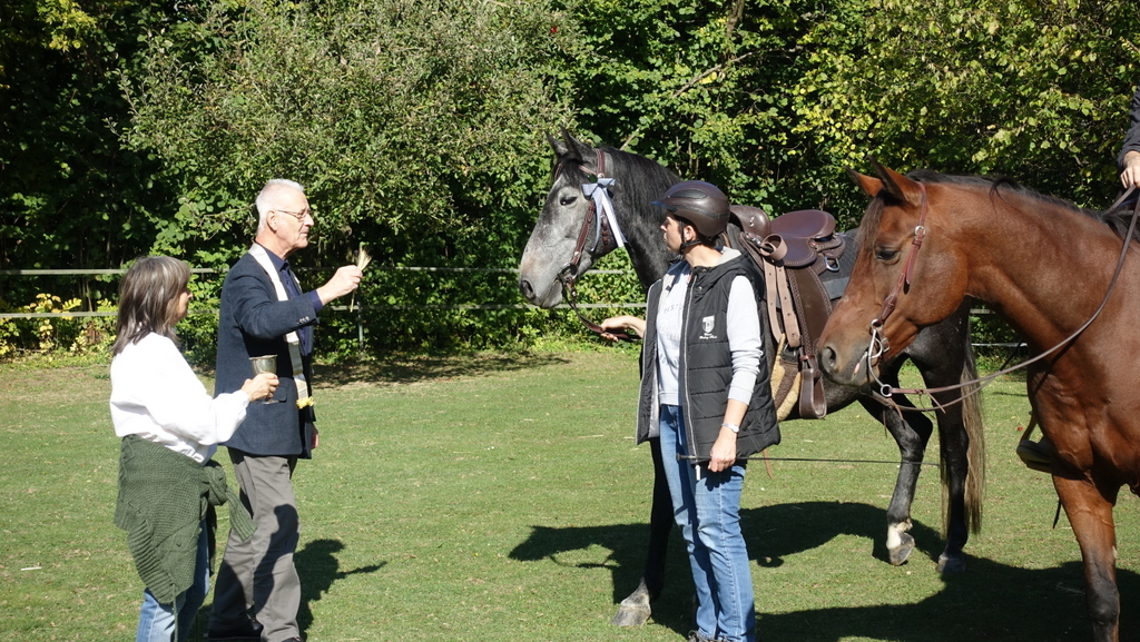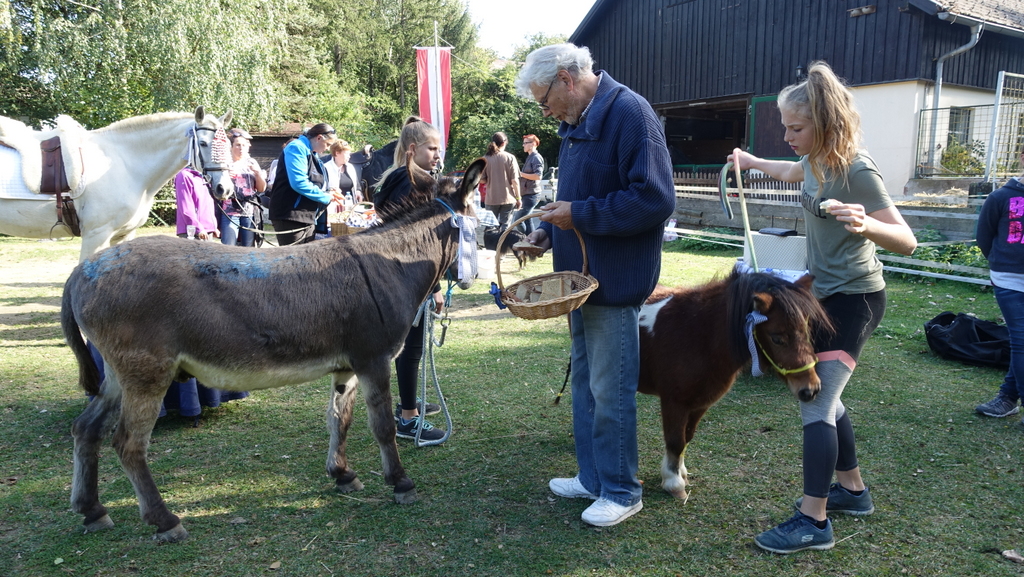 Am Samstag, 6. Oktober 2018, einem warmen, sonnigen Herbsttag, fand für ReiterInnen und Pferde, ein Minipferd, einen Esel und Hunden die Assisifeier am Staudahof statt.