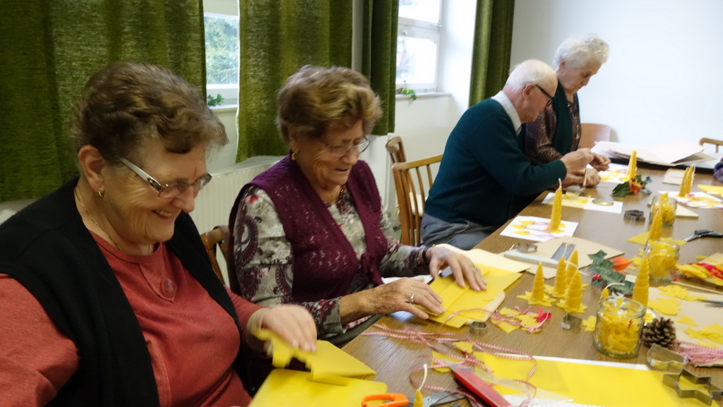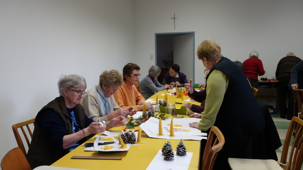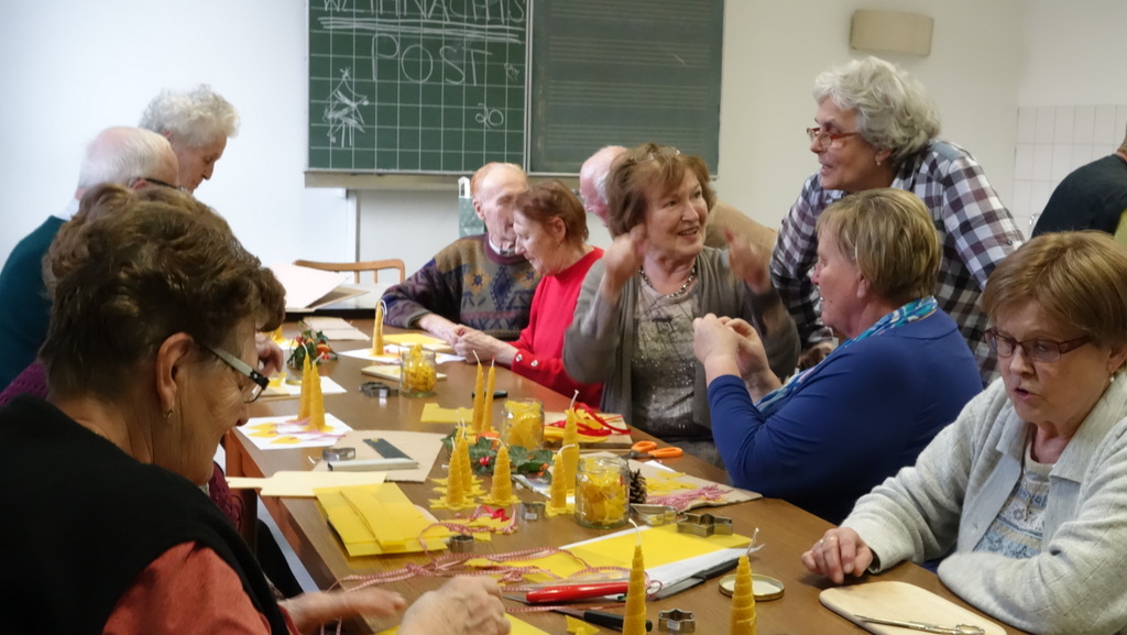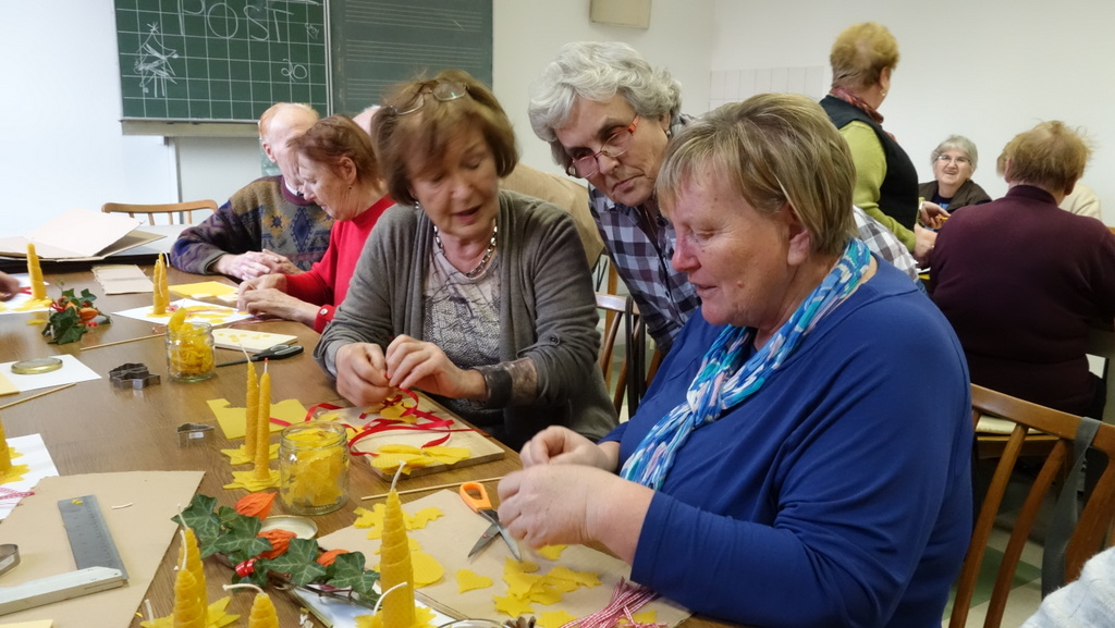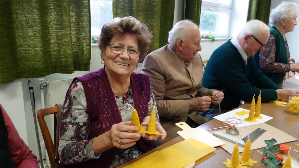 Mit viel Spaß und Einsatz wurden Kerzen aus Bienenwachs gedreht, Anhänger ausgestochen, Zapfen besprüht, geklebt und vieles mehr. Ein wirklich schöner Nachmittag war es, sogar "Antibastler" machten begeistert mit und alle freuten sich über ihre "Kunstwerke"! Mit Applaus wurde Maria Brauner ein herzliches Danke gesagt, den HeinzeldamenHerren und allen die das Jahr über zu den Treffen kamen. Wir freuen uns auch im nächsten Jahr viele schöne gemeinsame Stunden bei den "Letzte Mittwoch im Monat-Nachmittagen" zu verbringen.