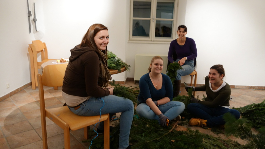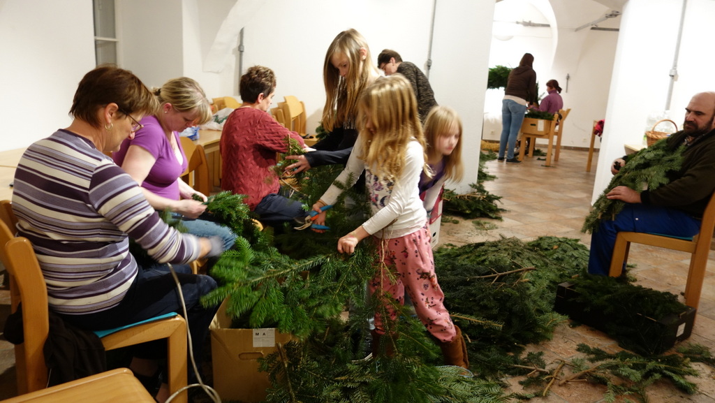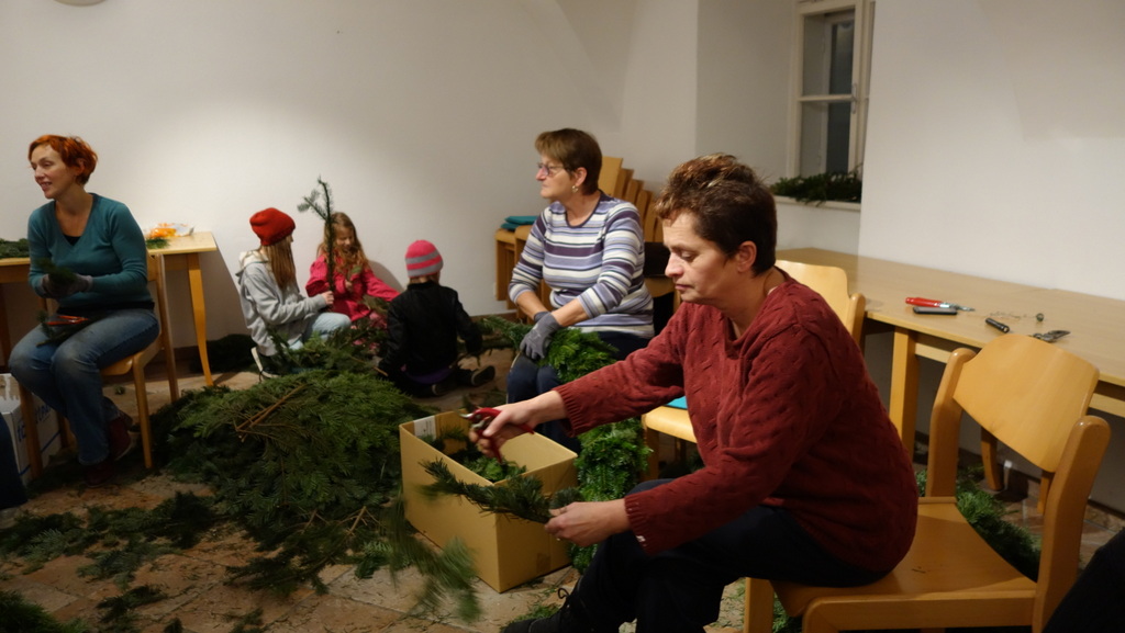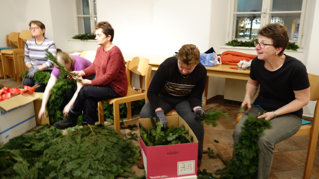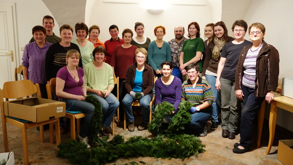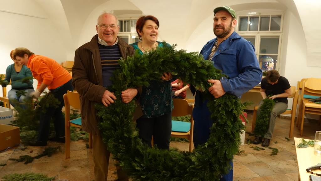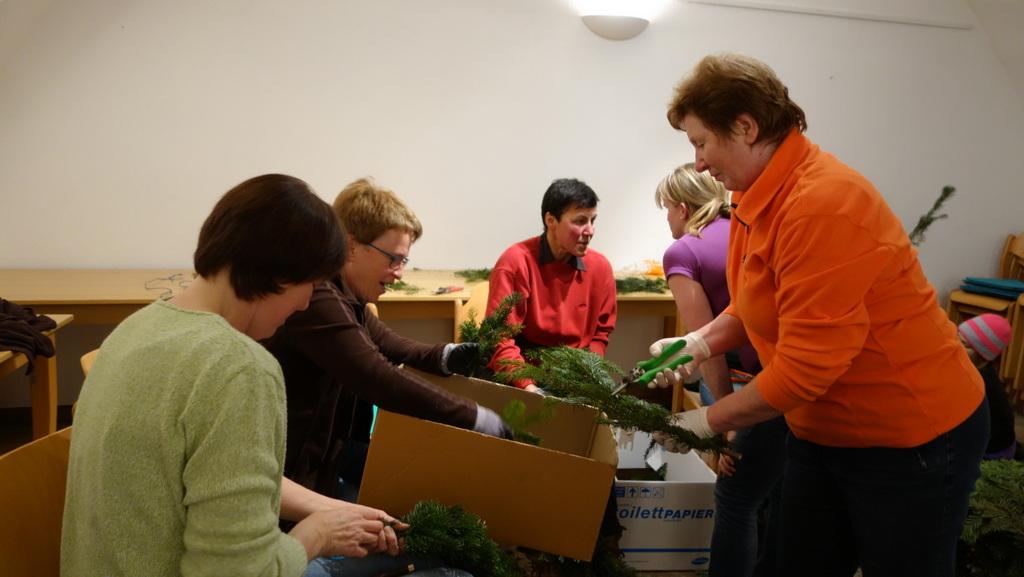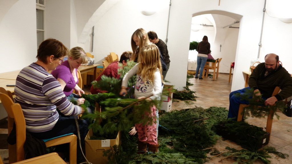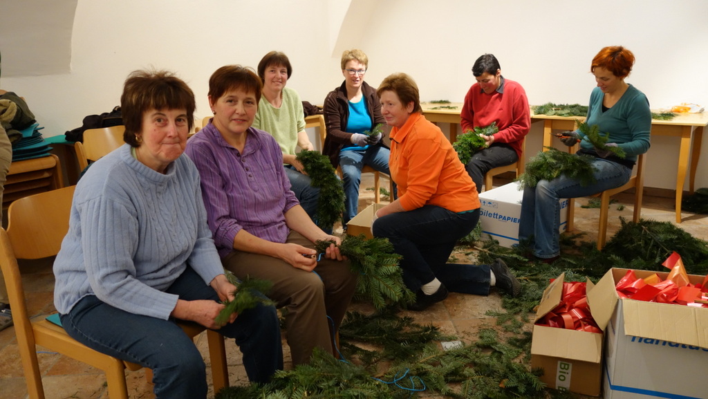 Viele Besprechungen Vorbereitungen sind erforderlich, und das Kranzbinden, dass am Montag, 24. November 2014 im Bürgerspital stattfand. Ein Danke allen HelferInnen, die mit großer Freude für den adventlichen Schmuck des Kilber Advents sorgten und die Kränze und Girlanden für unsere Kirche gebunden haben, an die Gemeinde für das zur Verfügung stellen des Bürgerspitals und Karl Luger für das wunderbare Reisig!!!!!!!!