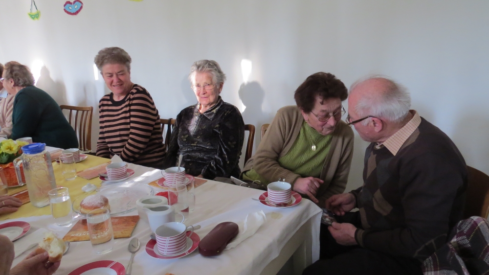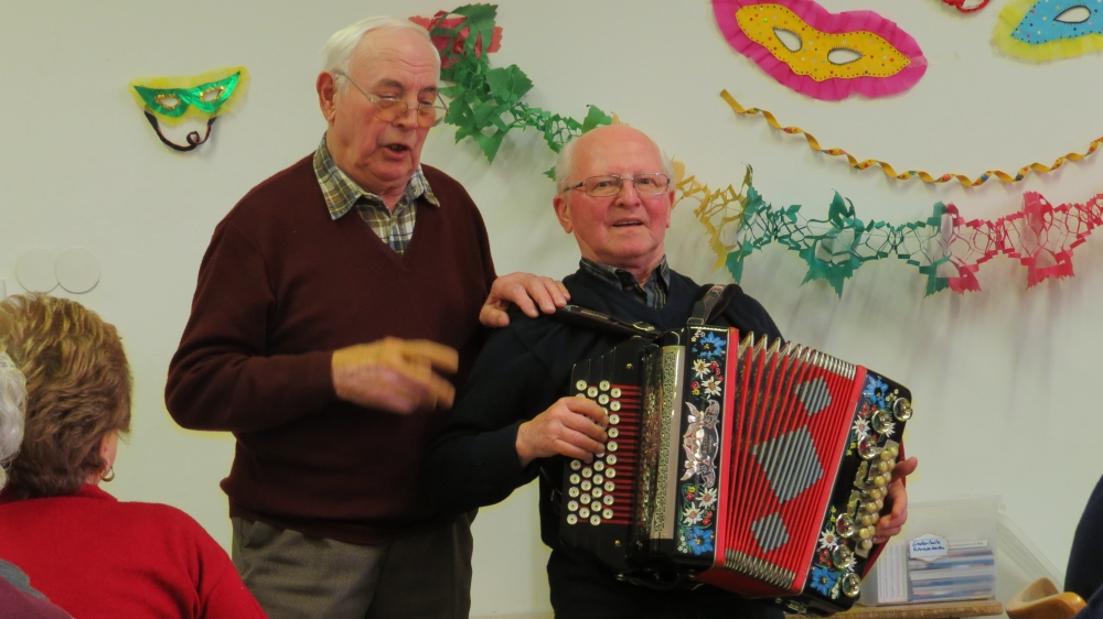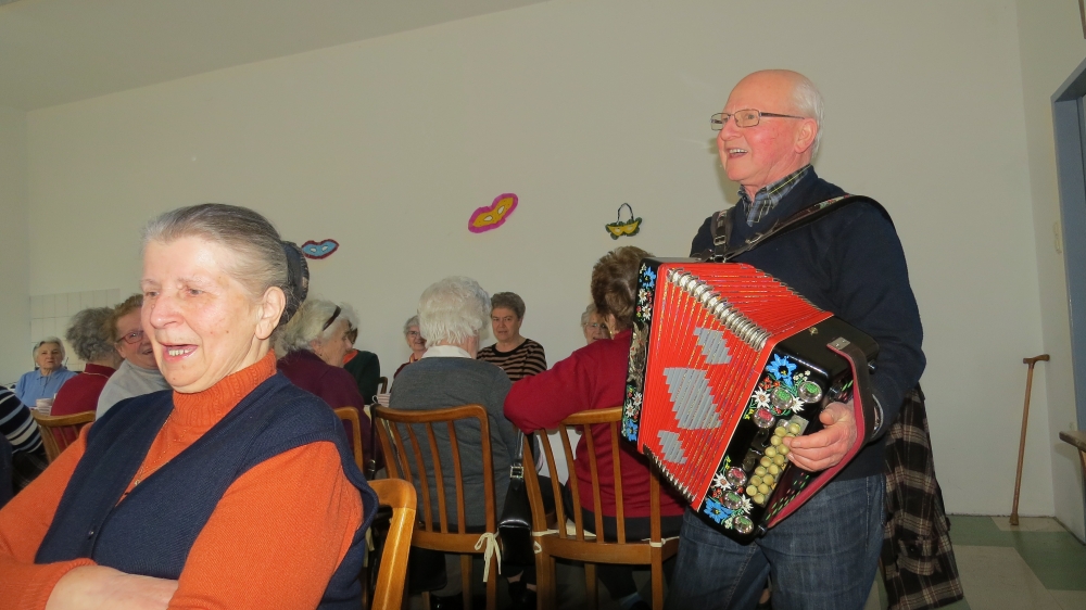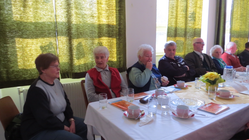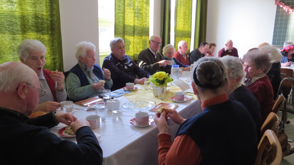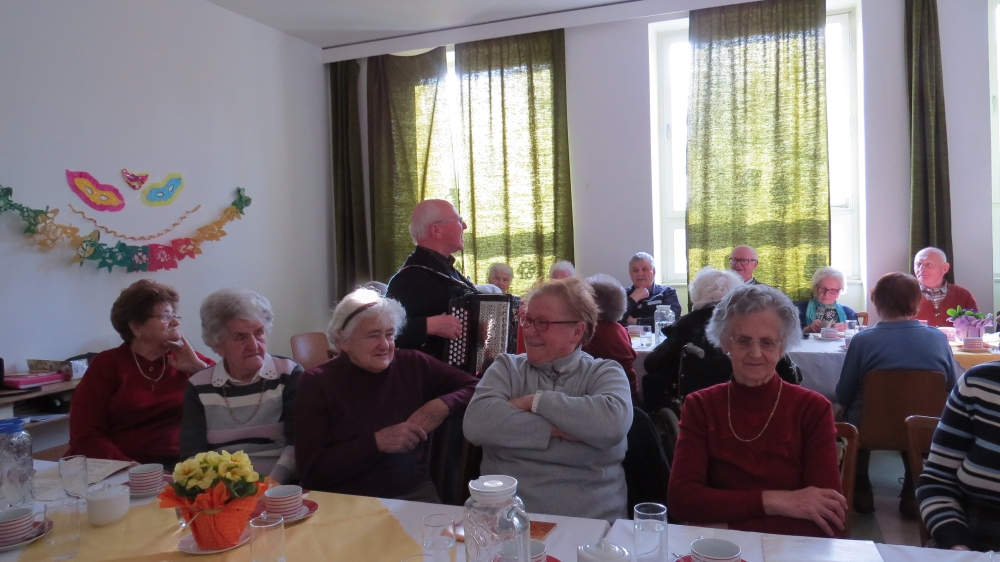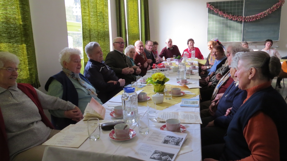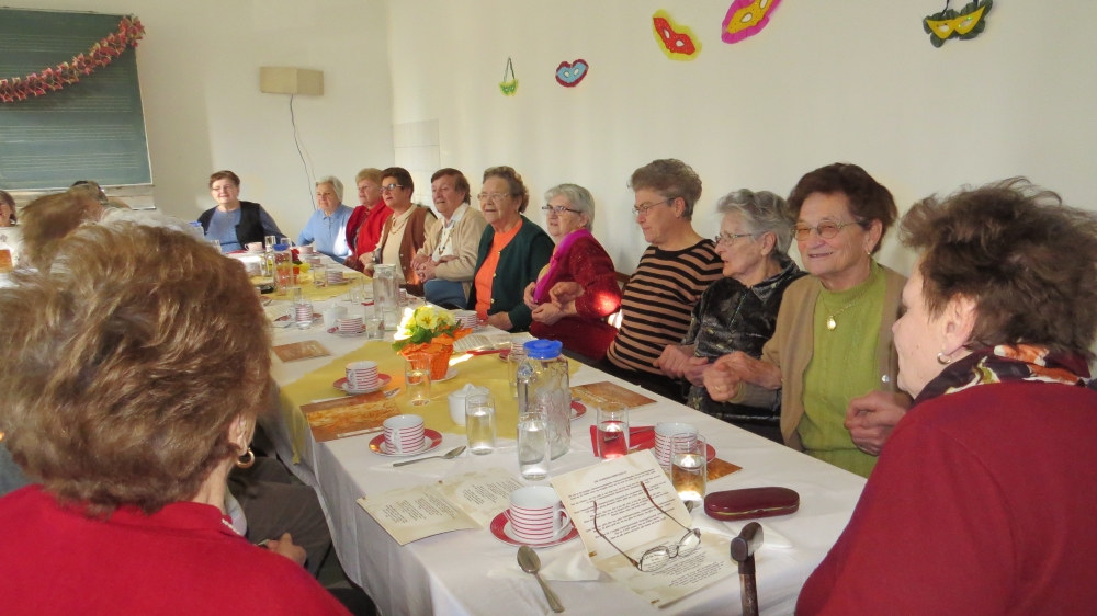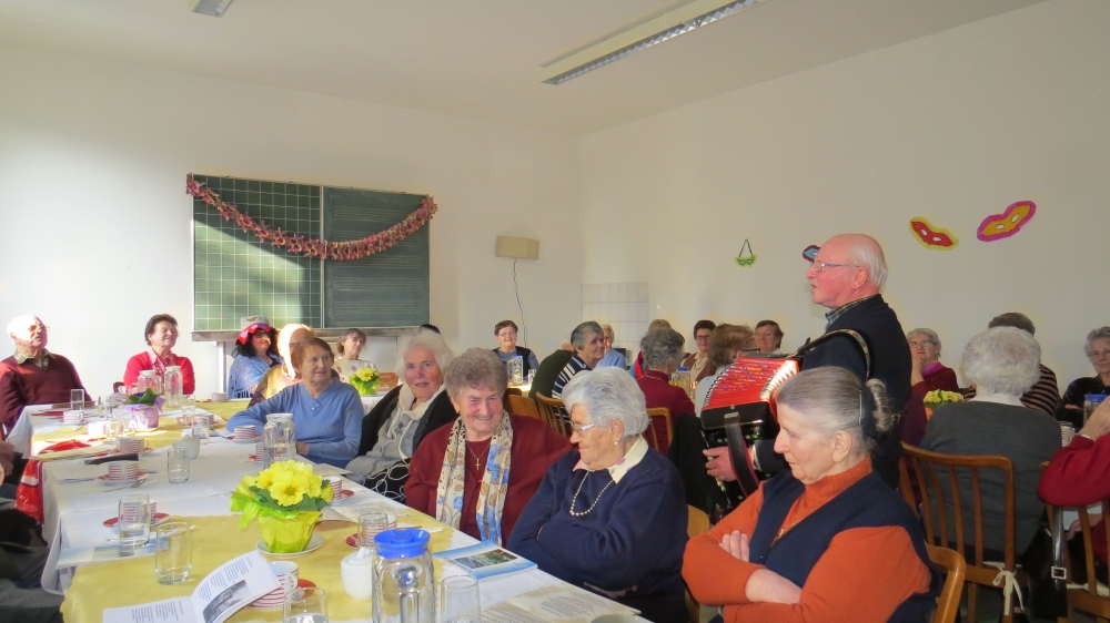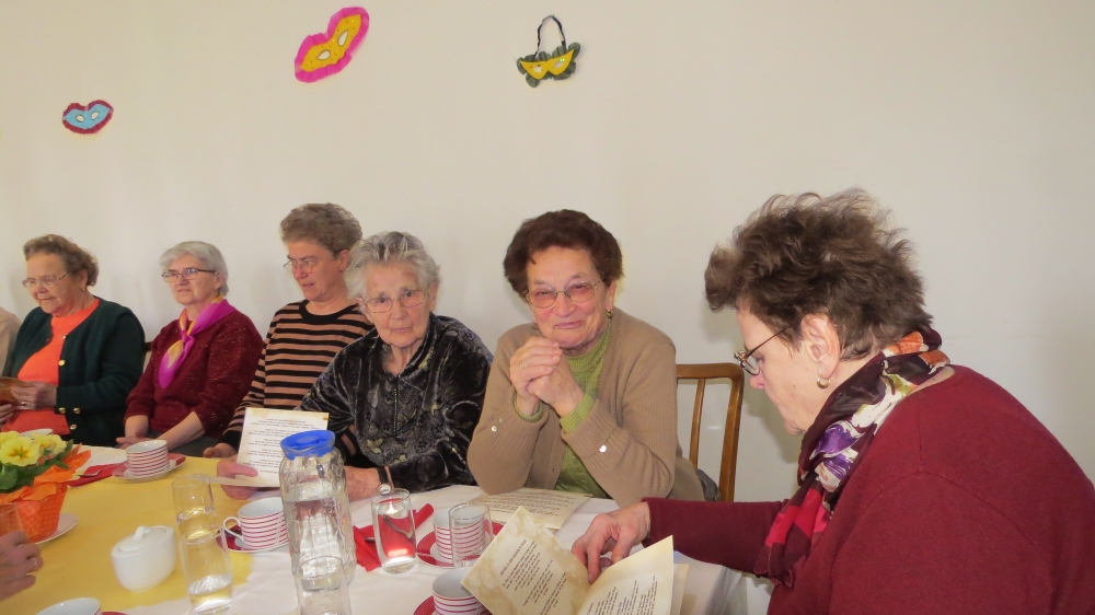 Faschingskrapfen gab es zur Jause, es wurde geplaudert, mitgesungen und bei den lustigen Geschichten von Maria Griessler viel gelacht.