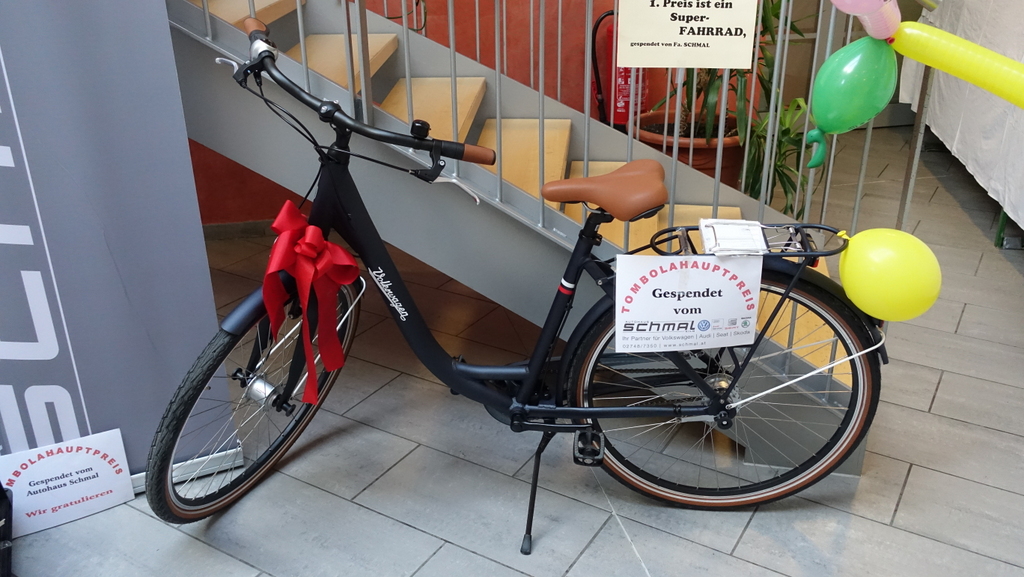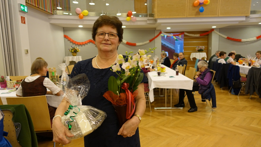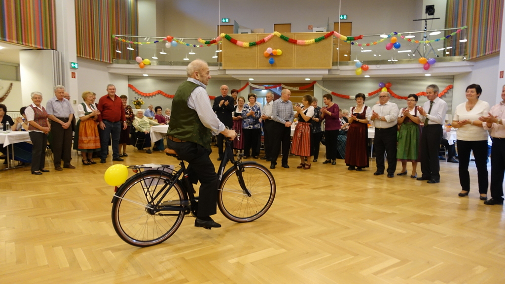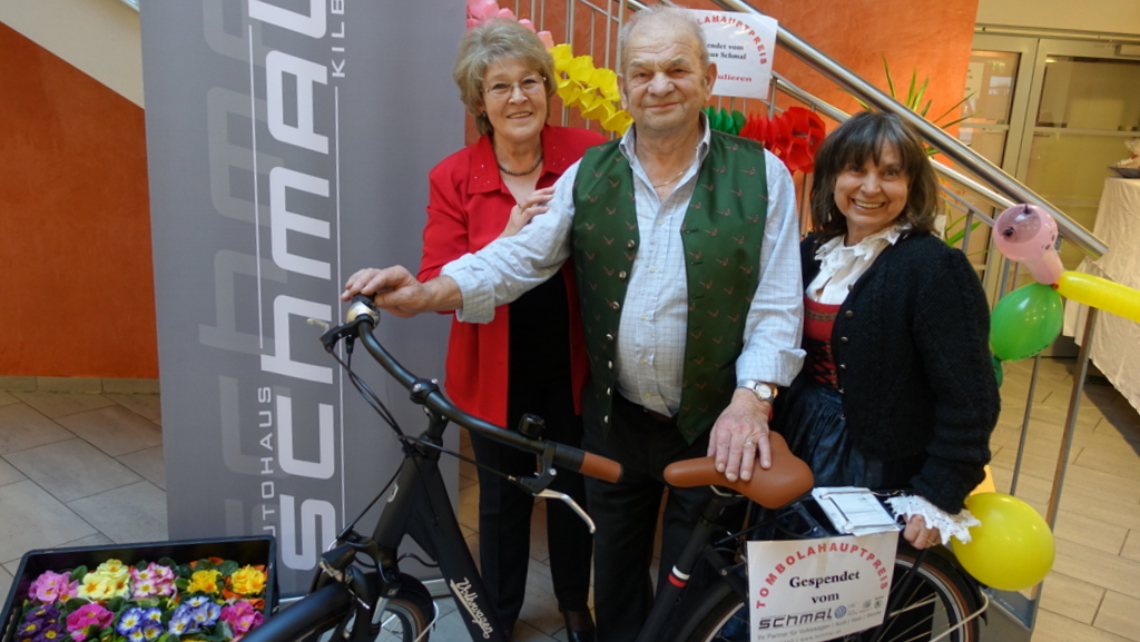 Ich darf Leni Thoma und ihrem Team und allen die zum Gelingen der Tombola beigetragen haben ein ganz herzliches Danke sagen, besonders an das Autohaus Schmal, das uns wieder den Hauptpreis, ein Damenfahrrad, gespendet hat, mit dem der glückliche Gewinner Herr Wilfried Gram aus Hofstetten, einige Runden im Saal fuhr, während „Ja, wir san mit dem Radl da" gesungen wurde. Aber auch die anderen Preise bereiteten viel Freude!