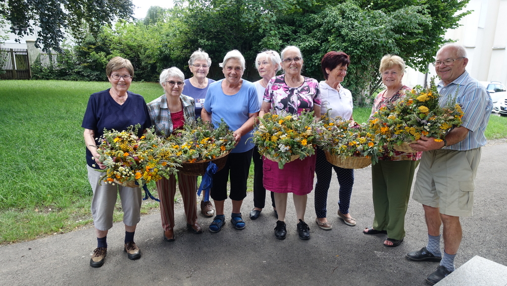Nicht zu glauben, zum achten Mal darf ich Maria Brauner, Blumen Rohringer und allen die Blumen und Kräuter mitgebracht und daraus Sträusserln gebunden haben ein herzliches Danke sagen.