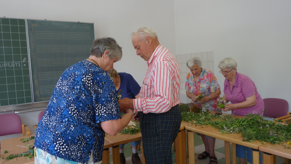 Fünf Jahre "Kräutersträußerlbinden" der Generation 50 plus in der alten Schule in Kettenreith! Zum sechsten Mal wurden mit viel Engagement Kräuter und Blumen mitgebracht und zu kleinen Sträußerln gebunden.