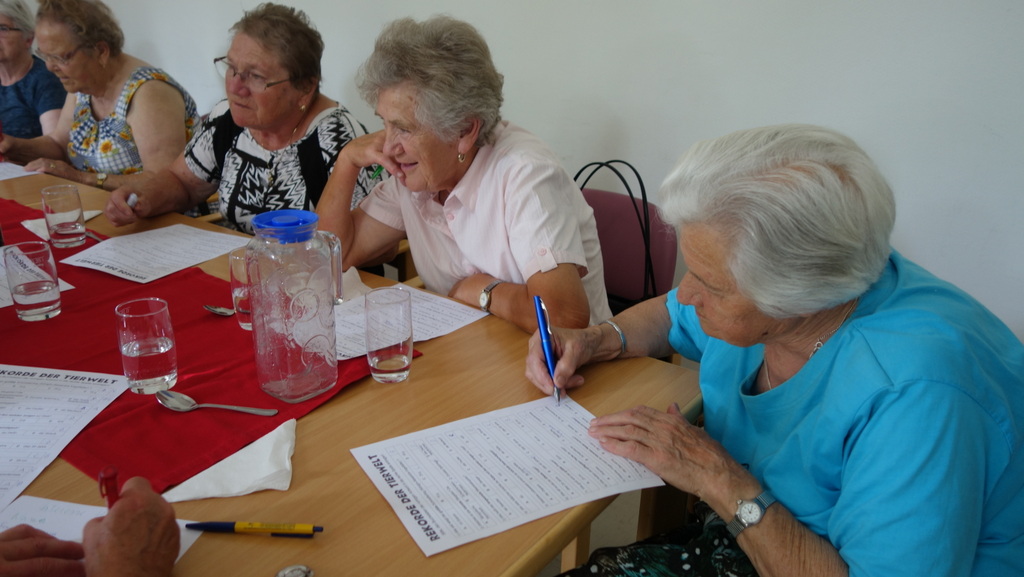 Beim „Letzten Mittwoch im Monat Treff“ am 28. 6.2017 in der alten Schule in Kettenreith wurde Maria Brauner herzlich begrüßt, die einen ganz besonderen Nachmittag vorbereitet hatte. Ein Quiz über „Rekorde der Tiere“. Alle machten mit viel Spaß und Ernst mit, manches wusste man, und manches wurde erraten!