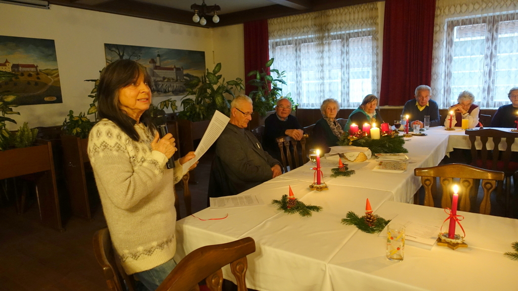 Wieder stand ein Adventnachmittag am Programm, und es war besonders schön unseren Hrn. Pfarrer und Neue Mittelschuldirektorin Anneliese Kerschner begrüßen zu dürfen, dass Frau Eva Timko für ihren erkrankten Mann einsprang und mit den Schülerinnen und Schülern der Musikschule Alpenvorland unsere Feier verschönerte, und dass SchülerInnen der Neuen Mittelschule uns mit einer Weihnachtsgeschichte, Maria Griessler, Erika Buchbauer und Leni Thoma mit Gedichten zum Schmunzeln brachten. Ihnen allen und Maria Jamöck und ihrem Team, die den Saal adventlich schmückten, ein großes Danke!!