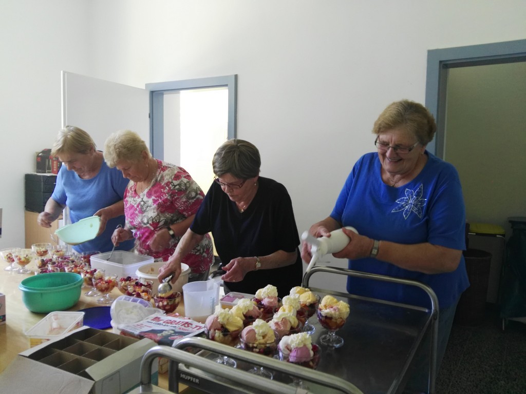 Eis und Obstsalat passten zum warmen Wetter und nochmals ein Danke ergeht an die fleißigen HeinzeldamenHerren!