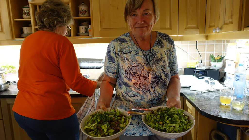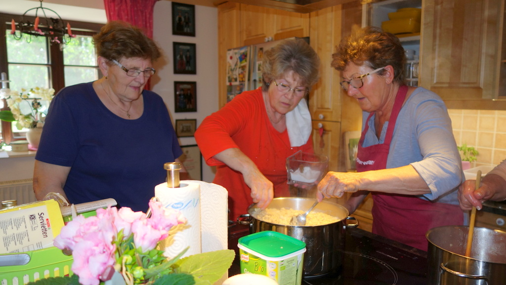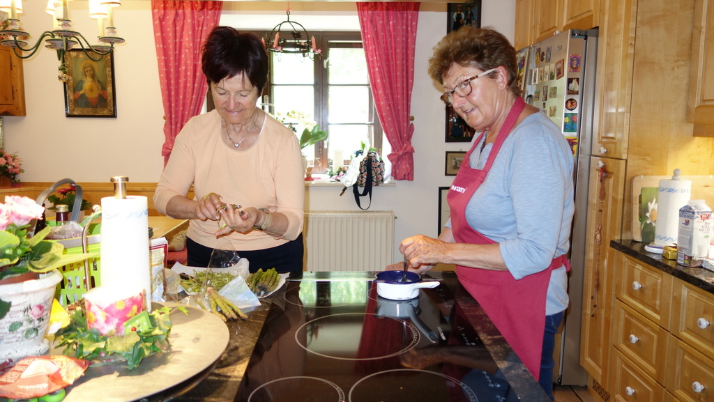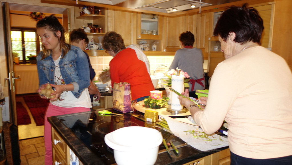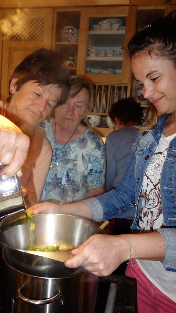 Gemüsesuppe, Spargelnockerln mit Parmesan und grünem Salat, sowie ein Rhabarberkuchen wurden zubereitet und dann gemeinsam verkostet! Es schmeckte ausgezeichnet, Rezepte werden bestimmt nachgekocht und Julia, unsere Diätologin, bekam ein herzlich Danke gesagt!