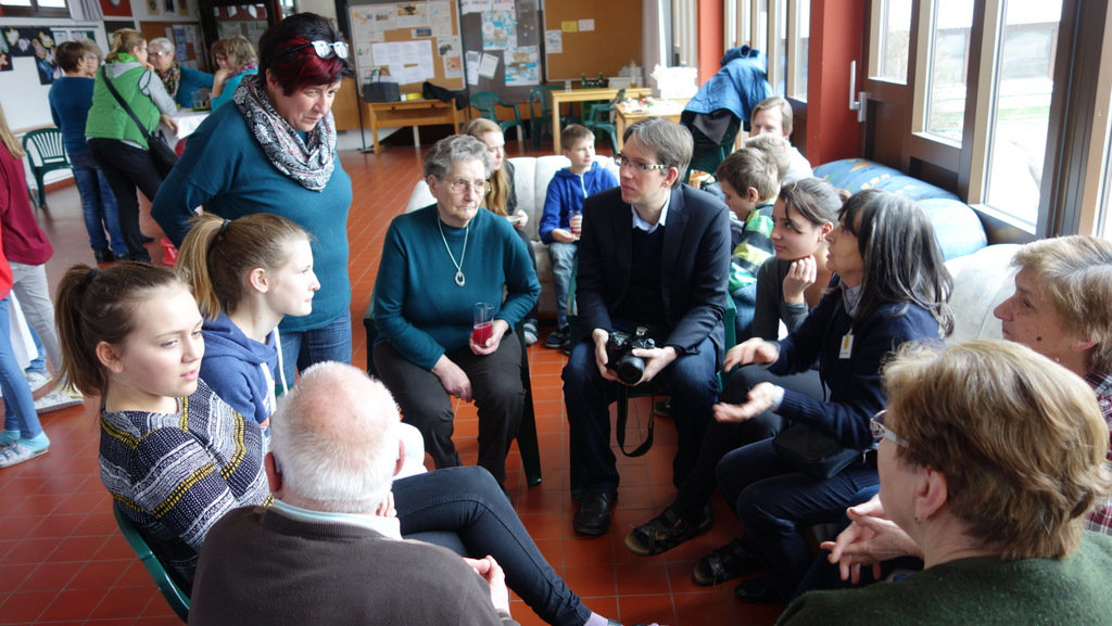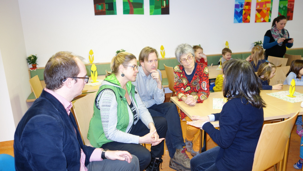 Gäste der LAK und der Donau Uni Krems begaben sich mit den Vorstandsmitgliedern des Bürger-Sozial-Forums am 8. März 2016 in der Gemeinde Kilb auf Spurensuche nach bestehenden und neuen Formen von intergenerationeller Solidarität und wollten erkunden wie junge und ältere Bürgerinnen zum Miteinander der Generationen, Identität und Zukunft des Sozialstaates stehen. Nach einer Begrüßung durch Herrn BM Ing. Manfred Roitner ging es mit Abenteuerlust im Betreuten Wohnen los. BewohnerInnen und Trixis Kindergartengruppe zeigten wie viel Freude und Spaß die monatlichen Zusammenkommen machen. Bei Familienbesuchen konnte man viel über "Mehrgenerationen unter einem Dach" erfahren und in der Aula der Neuen Mittelschule hieß Direktorin Anneliese Kerschner mit einigen SchülerInnen Gäste und Generation 50 plusler willkommen und ermöglichte interessante, anregende Gespräche. Weitere Befragungen und ein von Brigitte Felnhofer geführter, kurzer Kirchenbesuch folgten, und viel zu schnell stand im Betreuten Wohnen das Resümee des Erlebtem am Programm. Das "Andenken" der Gäste wiederzukommen und vielleicht tiefer auf das Projekt "Generationen in Begegnung" in Kilb einzugehen, würde uns wirklich sehr freuen!