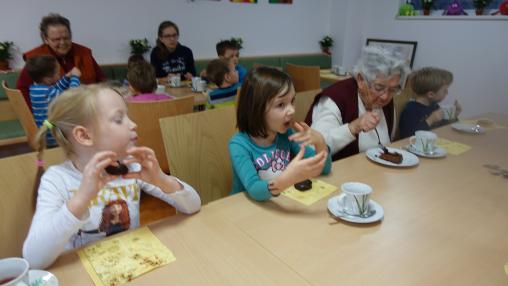 Lachen, Freude, ist bei den Besuchen vorprogrammiert, gemeinsames Singen und dieses Mal sogar Boogie-Woogie-Tanzen! Leni Thoma bereitete bezaubernde und gut schmeckende "Faschingsmuffins" und Kuchen zu, Marianne sorgte für Tee, und Brigitte und Ester vom Bürger Sozial Forum trugen ebenfalls zum Gelingen dieser schönen Vormittagsstunden bei! Ein besonderes Danke ergeht an alle und Trixi und ihr Team! Und wir alle, jung und älter, freuen uns schon auf das nächste Zusammenkommen!