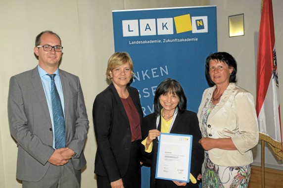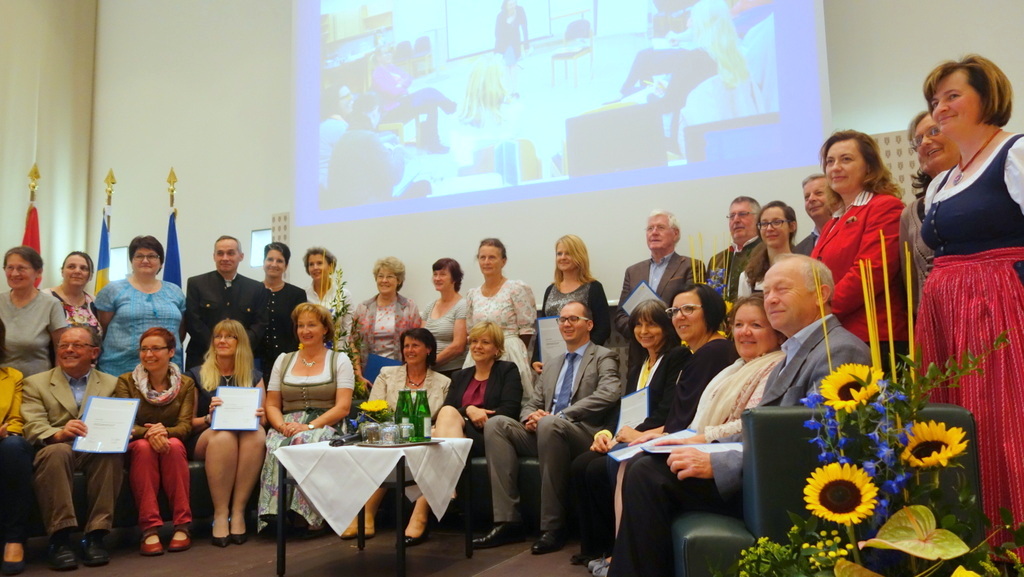 Im Rahmen einer stimmungsvollen Veranstaltung überreichte Landesrätin Mag.a Barbara Schwarz die Teilnahmebestätigungen an 38 neue SozialkoordinatorInnen, darunter die Vorstandsmitglieder des Bürger-Sozial-Forums, Isolde und Dieter Wagner Löffler, Angelika Egger-Bierleutgeb, Hermi Bürgmayer-Posseth und Sylvia Neuhuber, und Leni Thoma.