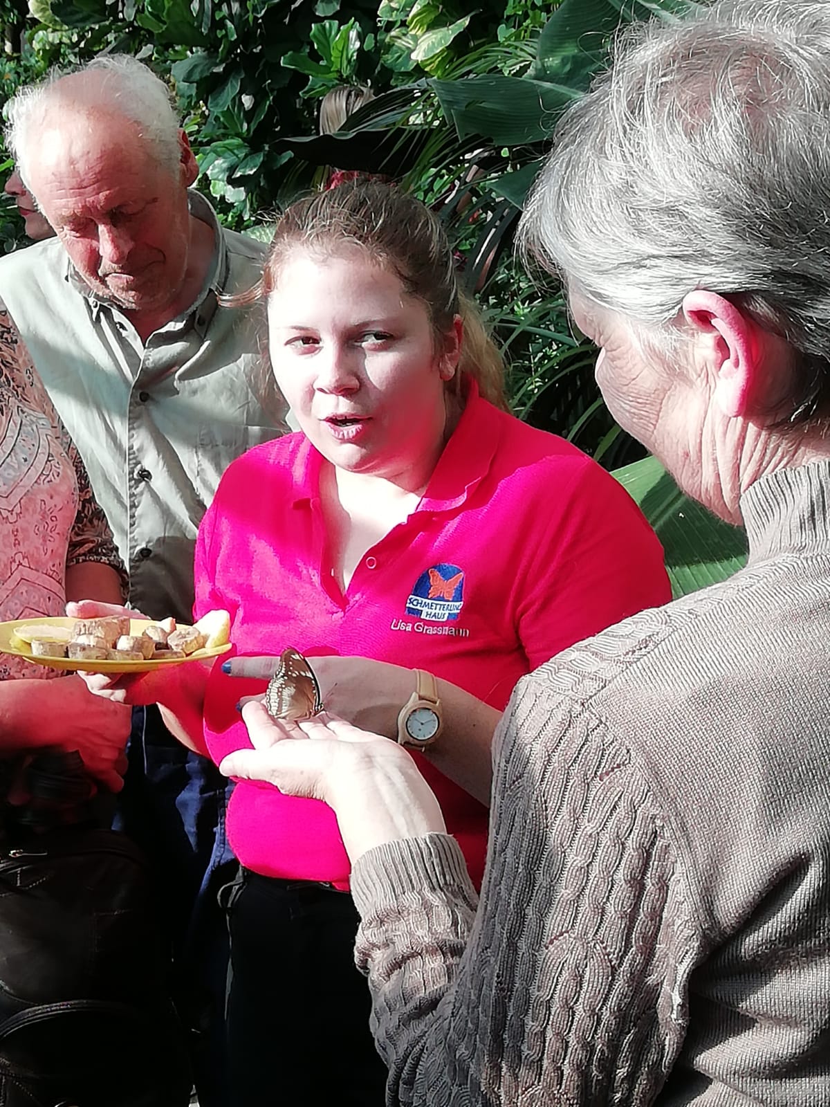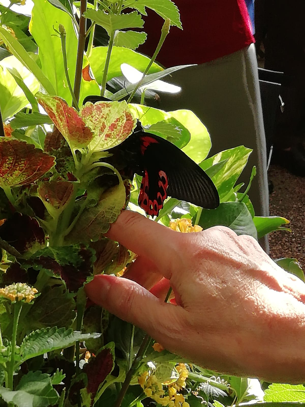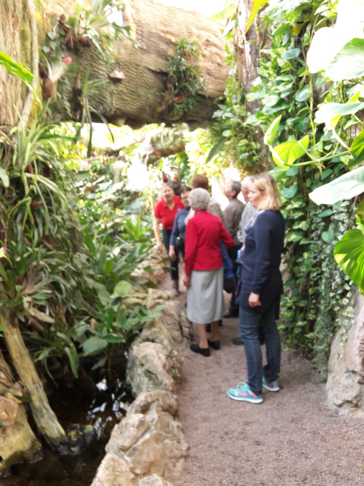 Den im Schmetterlinghaus frei fliegenden rund 400 Schmetterlingen der Tropen sind 150 verschiedenen Arten zuzurechnen, von denen keine unter den Artenschutz fällt. Das Innere des Glashauses ist ähnlich einem tropischen Regenwald gestaltet. Und es hat alle TeilnehmerInnen begeistert! Ein großes Danke an Maria Brauner und Rosemarie Mühlbachler für diesen schönen Tag!