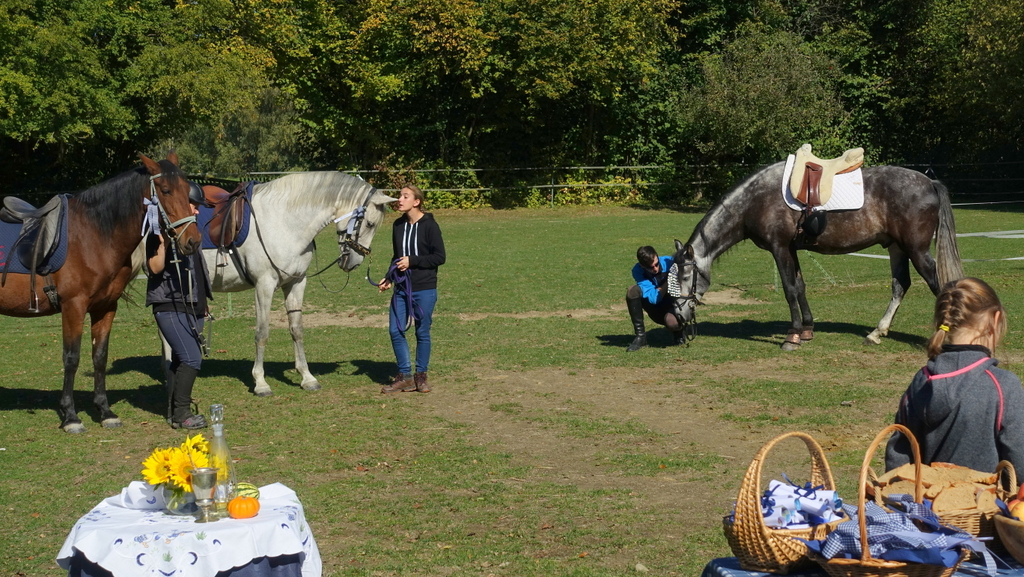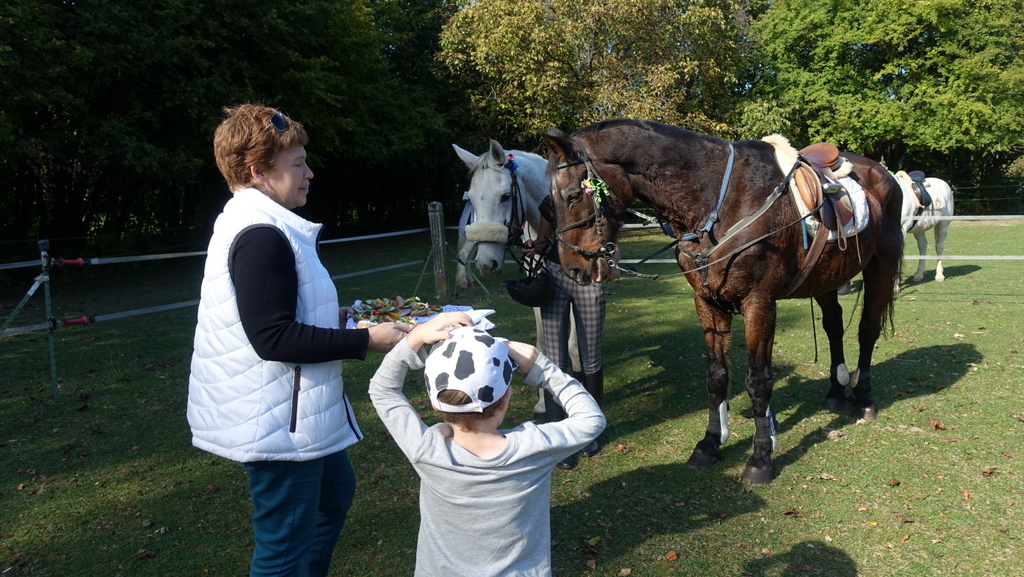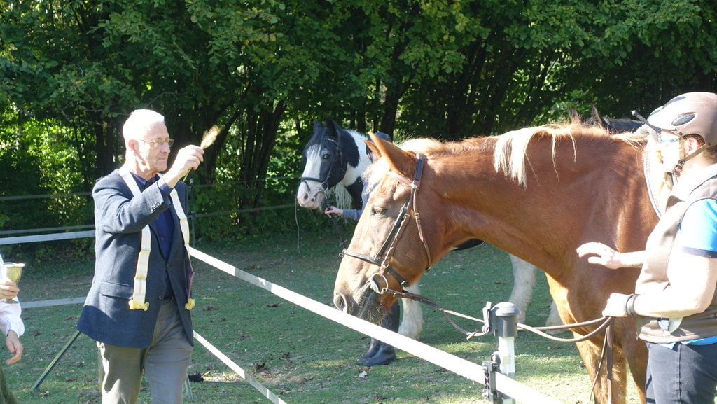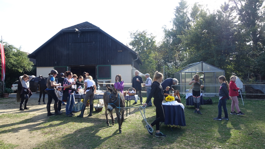 Am Samstag, 6. Oktober 2018, einem warmen, sonnigen Herbsttag, fand für ReiterInnen und Pferde, ein Minipferd, einen Esel und Hunden die Assisifeier am Staudahof statt.