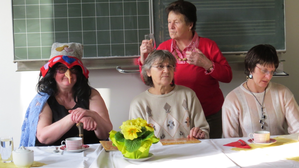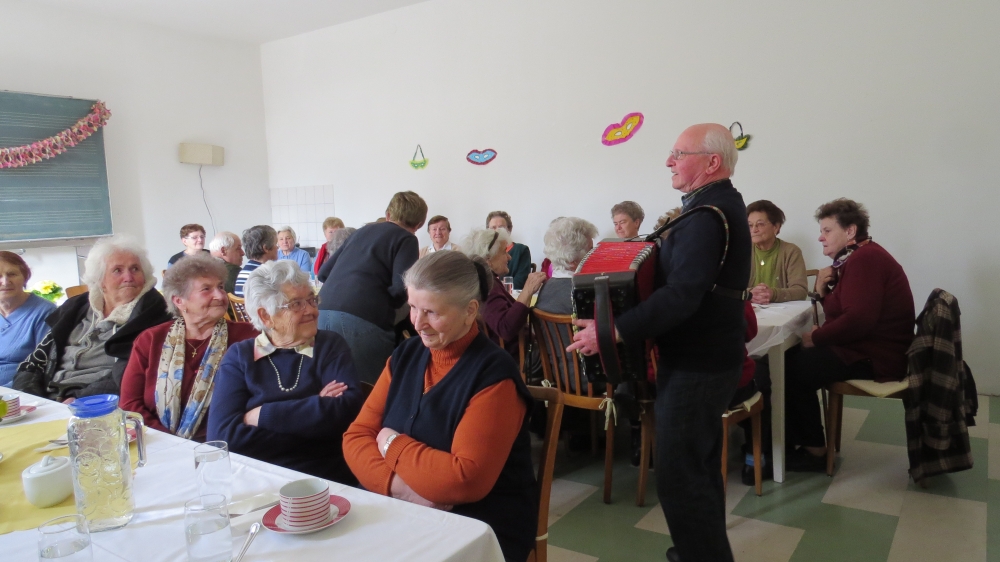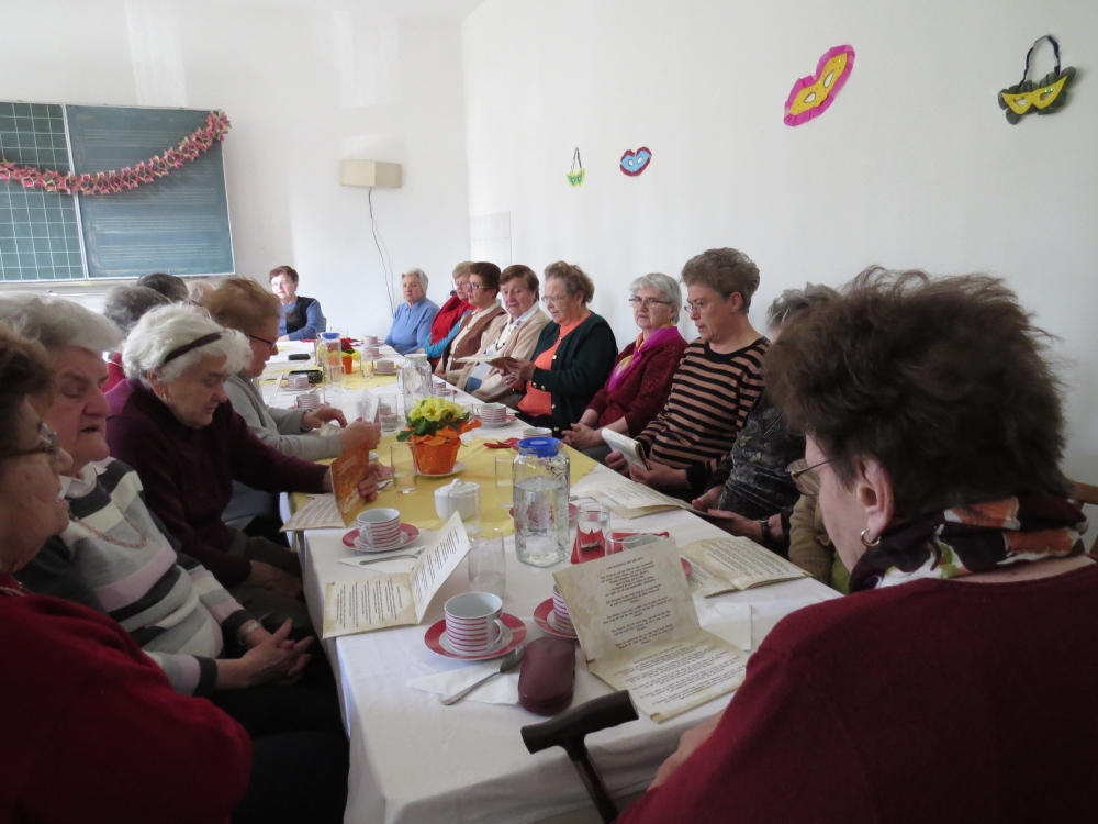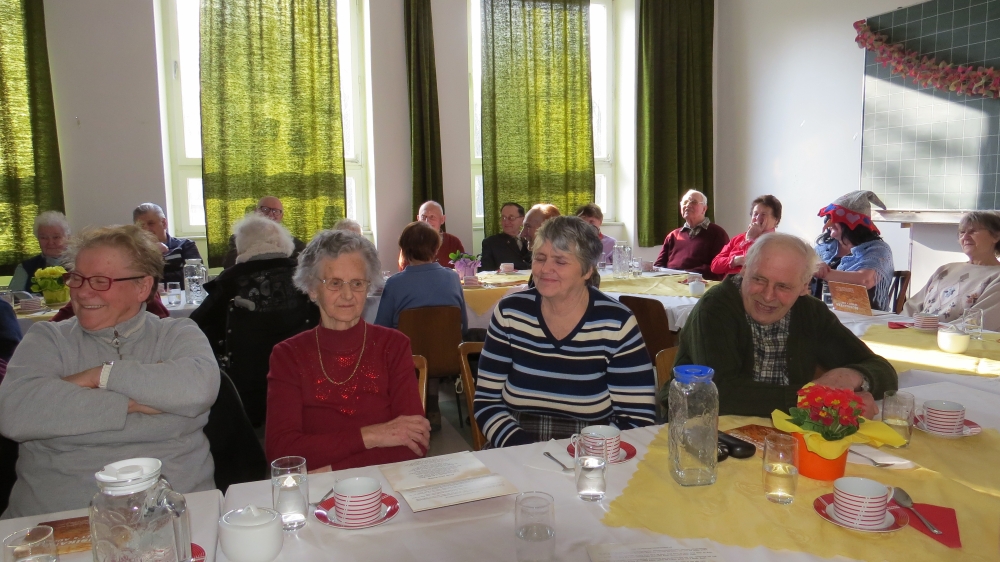 Faschingskrapfen gab es zur Jause, es wurde geplaudert, mitgesungen und bei den lustigen Geschichten von Maria Griessler viel gelacht.