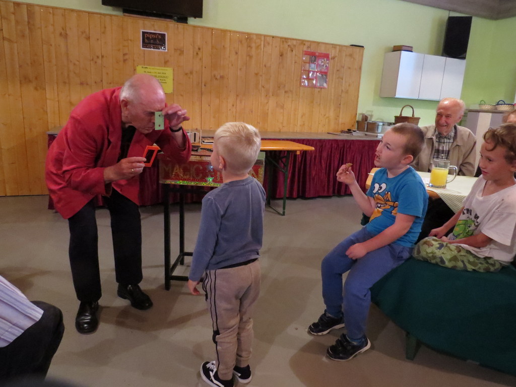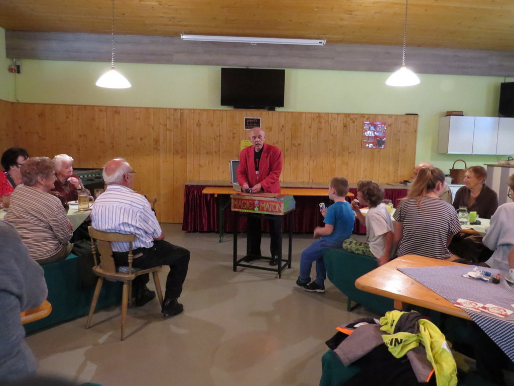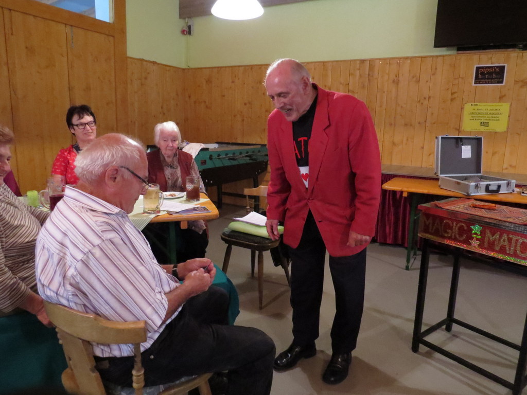 In Pipsis Salettl kam am 11. Juli 2018 zauberhafte Stimmung auf. Dazu trug Anton Mayer, „MATON“, bei, der zum sechsunddreißigsten Mal Jung und Älter mit seiner Magie begeisterte! Nochmals DANKE dafür! Natürlich wurde den Geburtsstagskindern gratuliert und auf die nächsten Zusammenkommen hingewiesen!