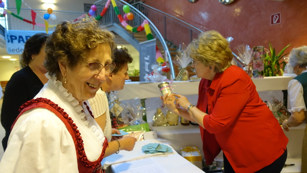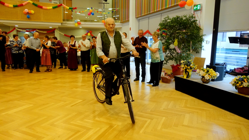 Ich darf Leni Thoma und ihrem Team und allen die zum Gelingen der Tombola beigetragen haben ein ganz herzliches Danke sagen, besonders an das Autohaus Schmal, das uns wieder den Hauptpreis, ein Damenfahrrad, gespendet hat, mit dem der glückliche Gewinner Herr Wilfried Gram aus Hofstetten, einige Runden im Saal fuhr, während „Ja, wir san mit dem Radl da" gesungen wurde. Aber auch die anderen Preise bereiteten viel Freude!