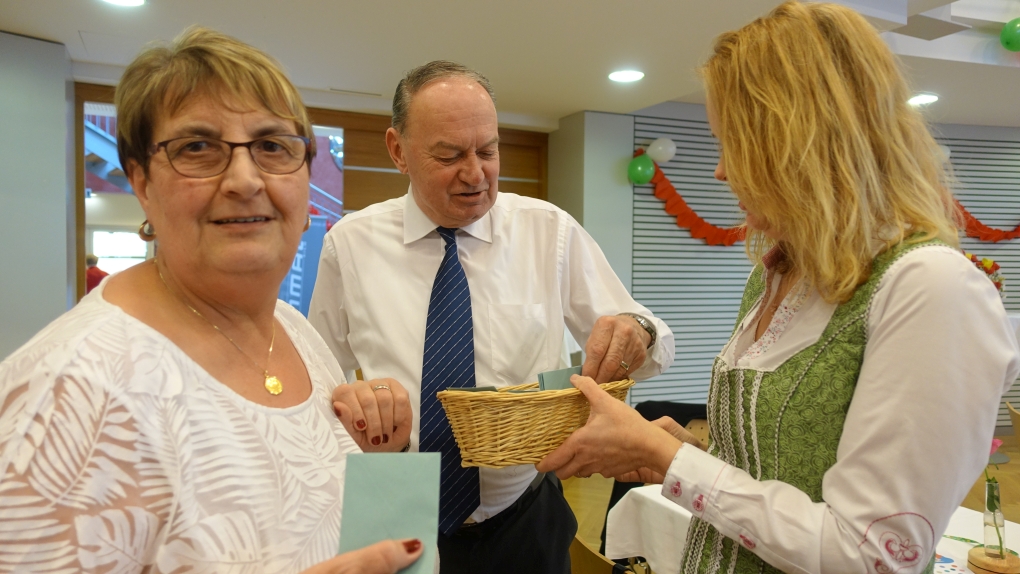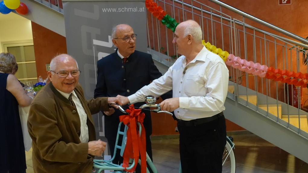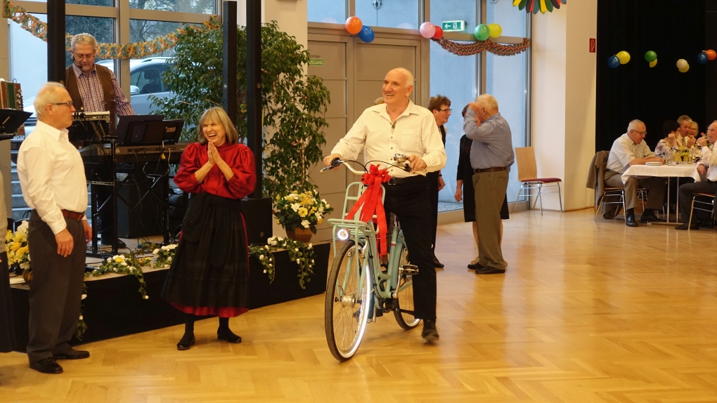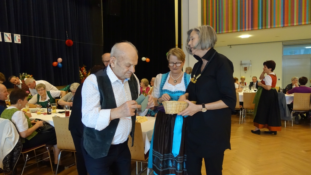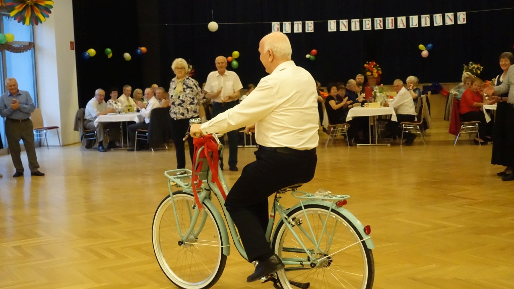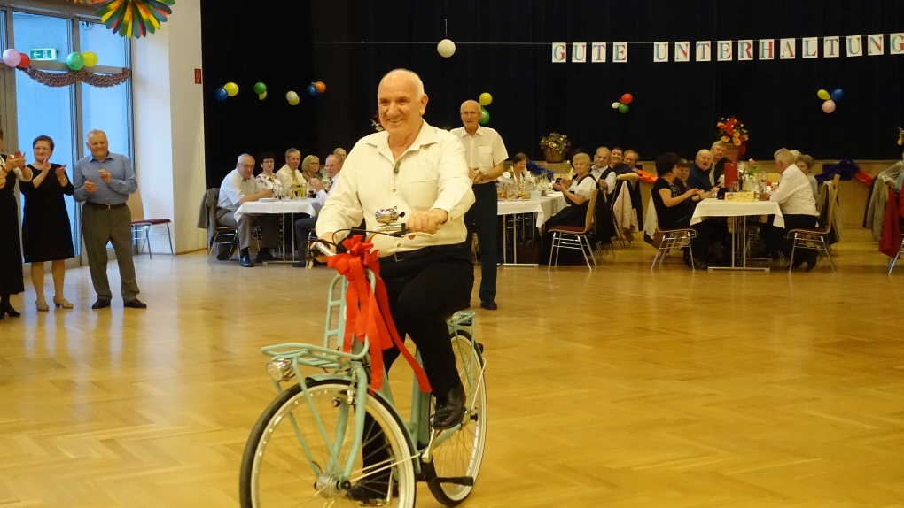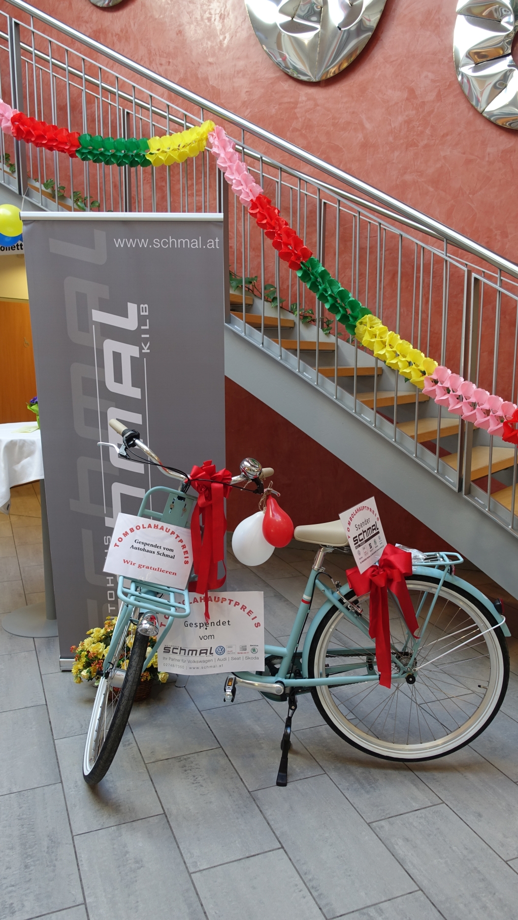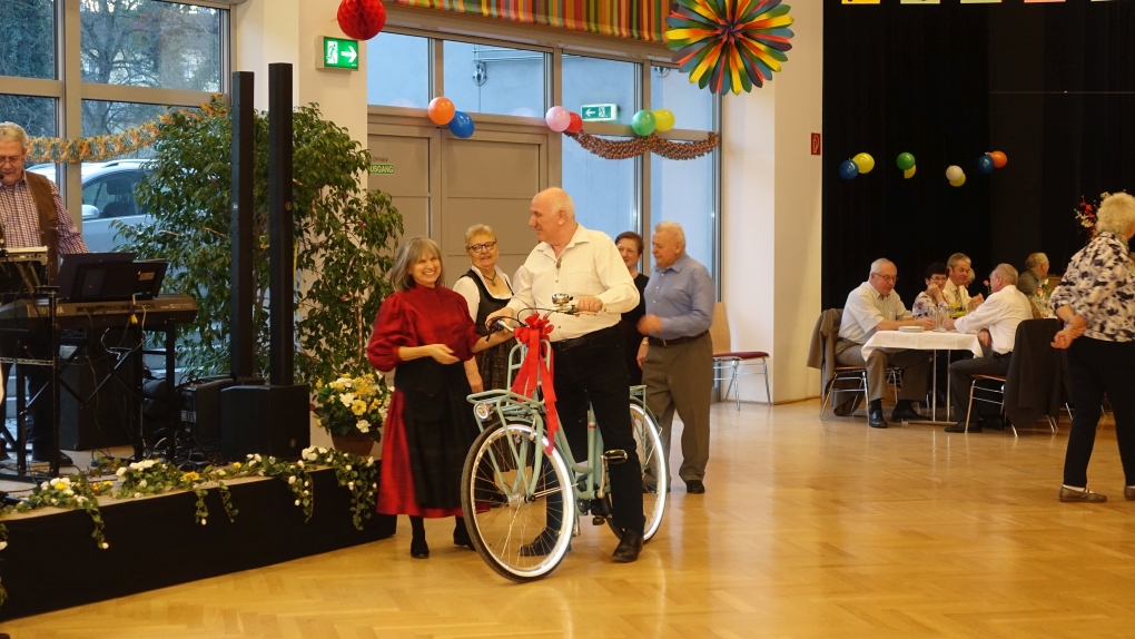 Ich darf Ester Kraaibeek für die Damenspenden, Leni Thoma und ihrem Team und allen die zum Gelingen der Tombola beigetragen haben ein ganz herzliches Danke sagen, besonders an das Autohaus Schmal, das uns wieder den Hauptpreis, ein Damenfahrrad, gespendet hat, mit dem der glückliche Gewinner Herr Friedrich Unfried aus Böheimkirchen, begeistert einige Runden im Saal fuhr, während traditionell „Ja, wir san mit dem Radl da" gesungen wurde. Aber auch die vielen anderen schönen Preise bereiteten viel Freude!