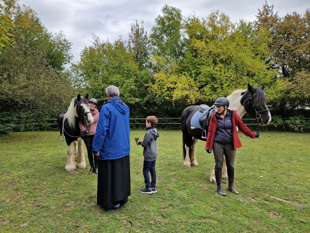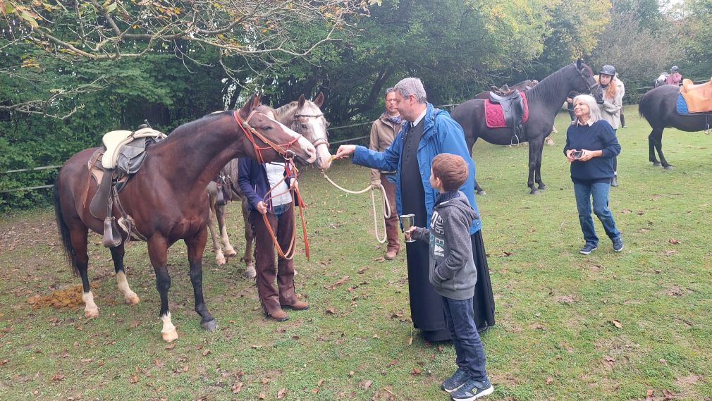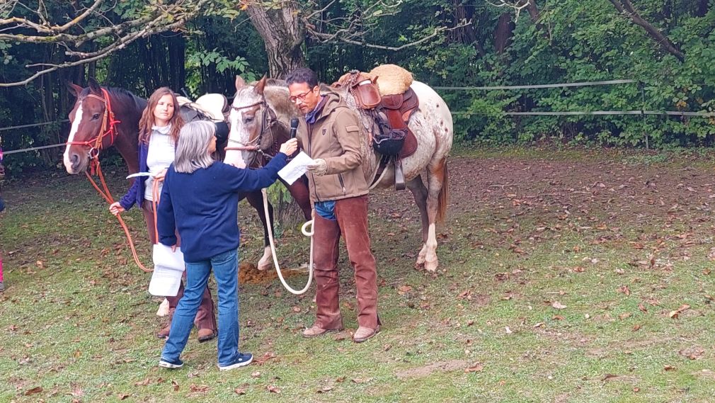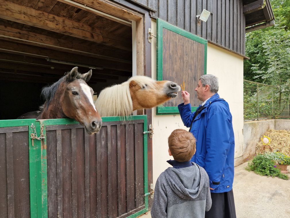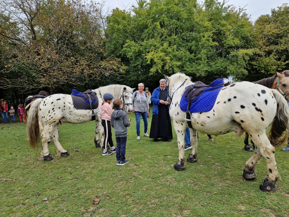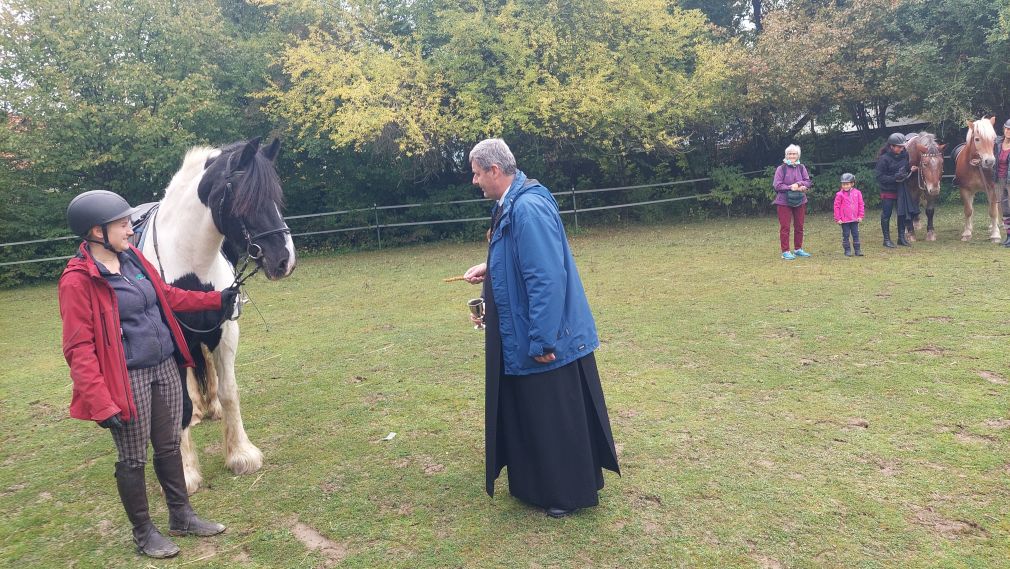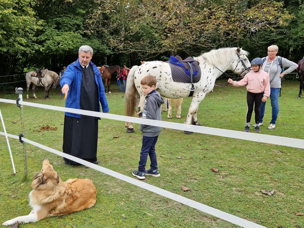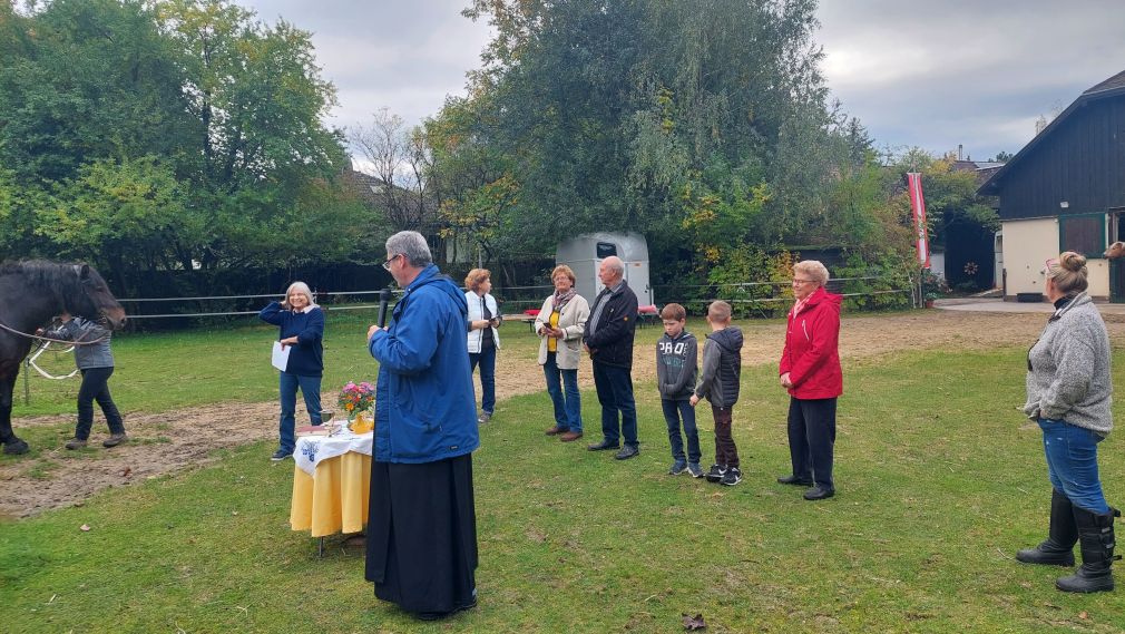 So ist Franziskus nicht nur Patron Italiens, sondern auch der Tiere und des Umweltschutzes. An seinem Gedenktag, 4. Oktober, wird auch der internationale Welttierschutztag begangen. Und so laden wir Reiterinnen und Reiter mit ihren Pferden, Hunden um diesen Tag zu einer kleinen Assisifeier auf den Staudahof. Viele Jahre erteilte Pater Wolfgang uns den Segen, heuer, am 1. Oktober, fand die Feier mit Pater Christoph statt, dem wir ein herzliches Danke sagen. Petrus meinte es gut mit uns und so konnten wir uns über ein Wiedersehen, nach Coronapause, sehr freuen!
