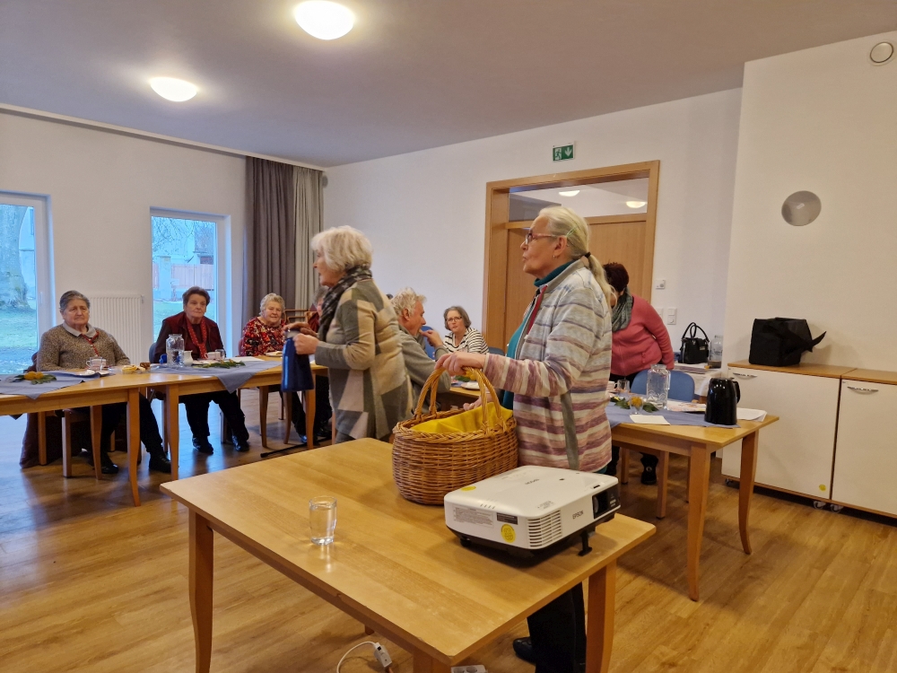 Maria Brauner zeigte uns Entwürfe für Osterkerzen, und wir freuen uns schon auf´s Kerzen verzieren, am 29. März 2023.