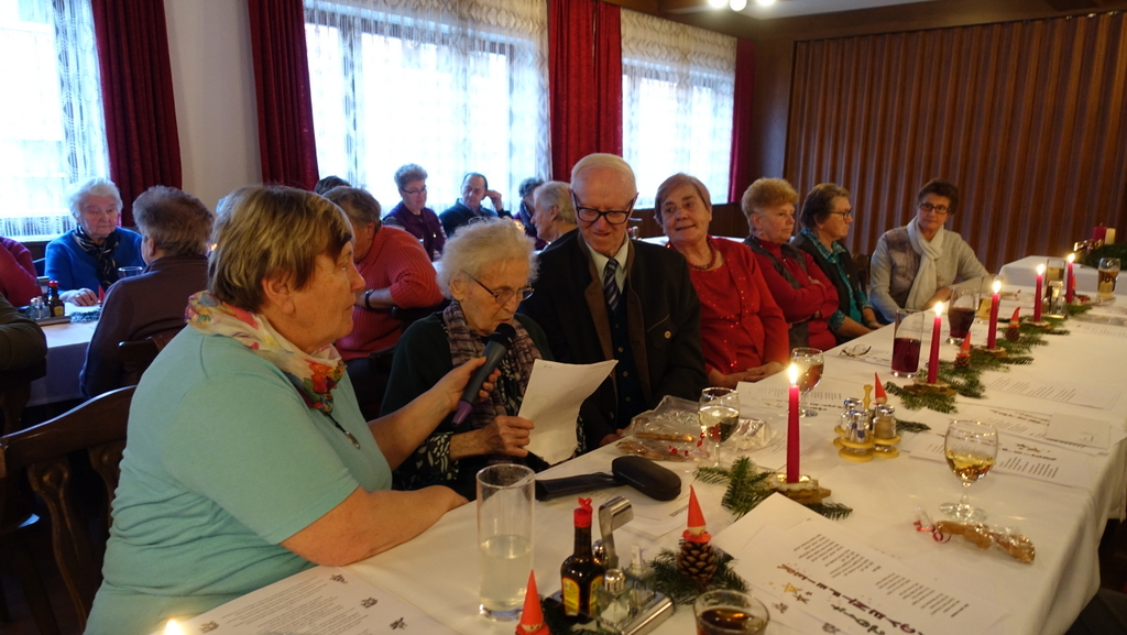 Dass unser Hr. Pfarrer Pater Wolfgang und Mittelschuldirektorin Anneliese Kerschner teilnahmen war besonders schön. Gedichte, vorgetragen von Maria Griessler, durften natürlich nicht fehlen, wie ein Danke an Maria Jamöck und ihr Team, die die Tische adventlich schmückten. Den Geburtstagskindern wurde gratuliert, Neuigkeiten berichtet und das Jahresprogramm und das Kalenderblatt 2018 verteilt, die beitragen sollen unsere Zusammenkommen nicht zu vergessen!