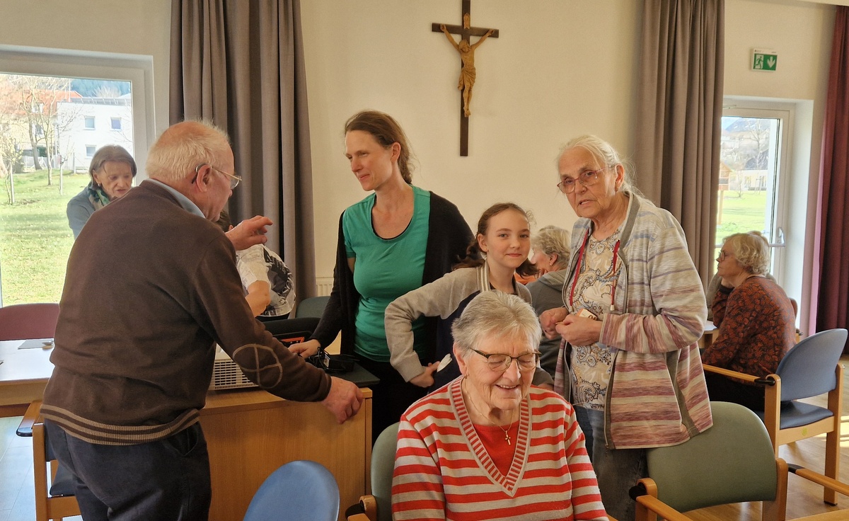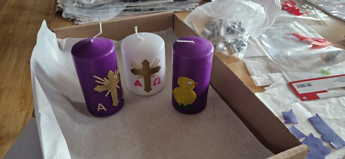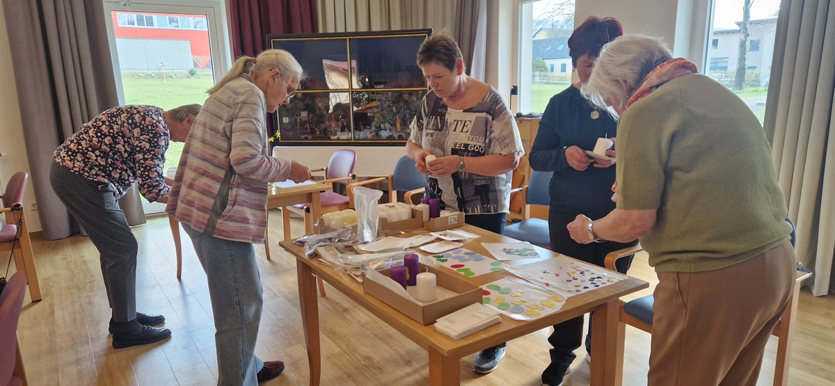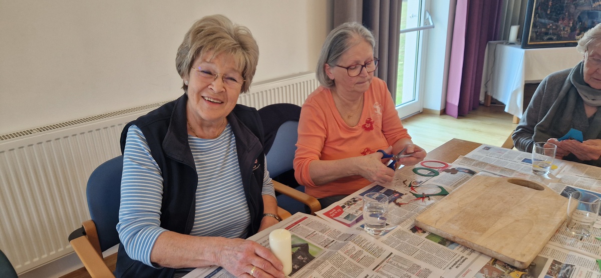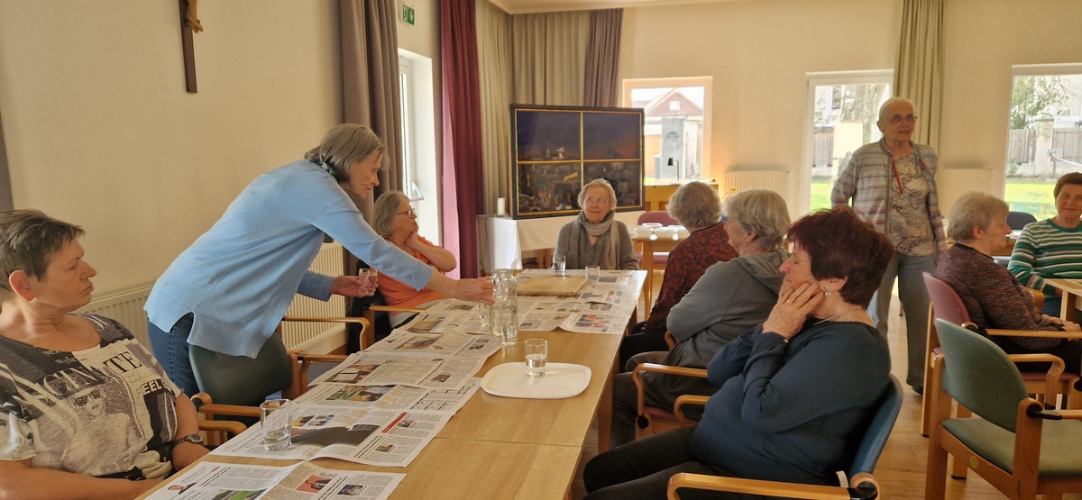 Kathi Kratochwil war immer dabei und gab nähere Informationen über die jeweilige Fastenaktion. So durften wir Kathi auch heuer herzlich willkommen und danke für´s Kommen sagen, wie auch Maria Brauner die Kerzen und neue Deko zum österlichen Verzieren vorbereitet hatte. Alle machten mit viel Begeisterung mit. Es wurde ausgeschnitten, geklebt und Kerzen mit schönen Motiven verziert. Kathi erzählte über die Fastenaktion 2025 „Auf die Würde, fertig los!“ und zeigte einen Film über die „Hüterinnen des Waldes“.