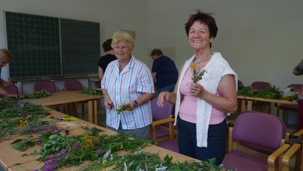 Allen die mitgeholfen haben, so viele Kräuter und Blumen gebracht und 200 Sträußerln gebunden haben, und besonders Frau Maria Brauner und Frau Rosemarie Rohringer darf ich wieder ein ganz herzliches Danke sagen!