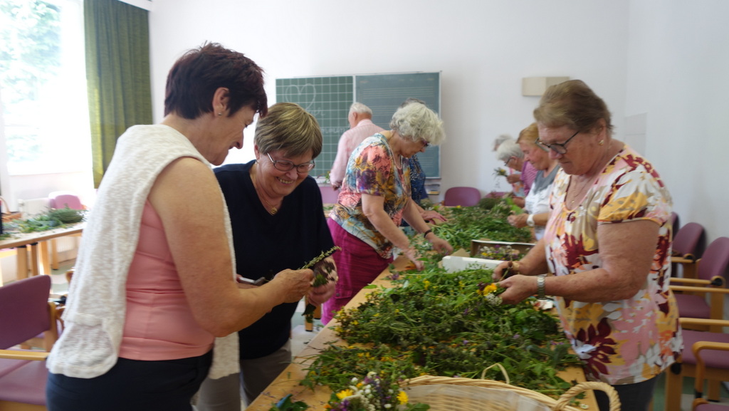 Fünf Jahre "Kräutersträußerlbinden" der Generation 50 plus in der alten Schule in Kettenreith! Zum sechsten Mal wurden mit viel Engagement Kräuter und Blumen mitgebracht und zu kleinen Sträußerln gebunden.