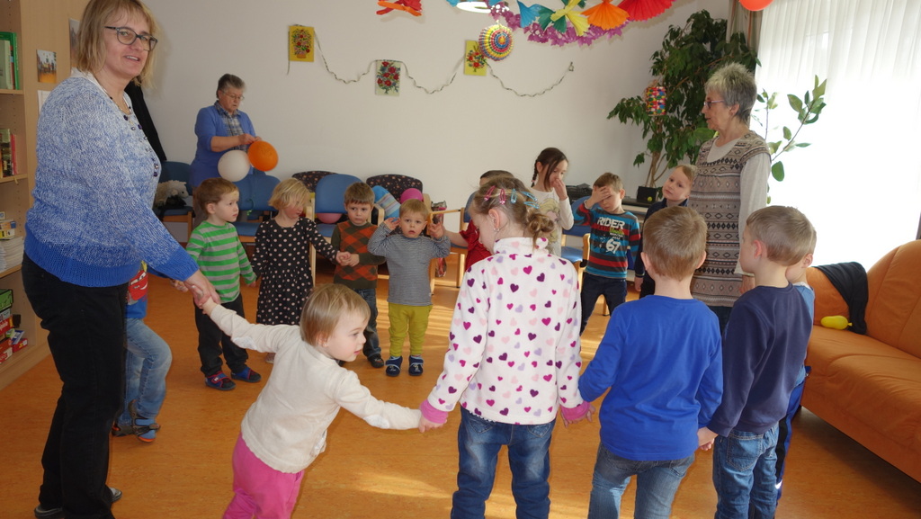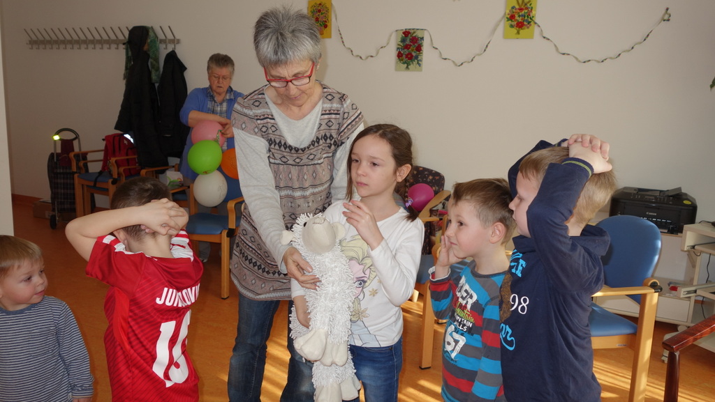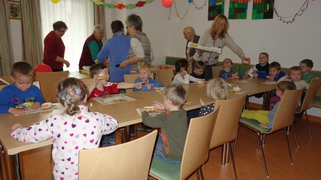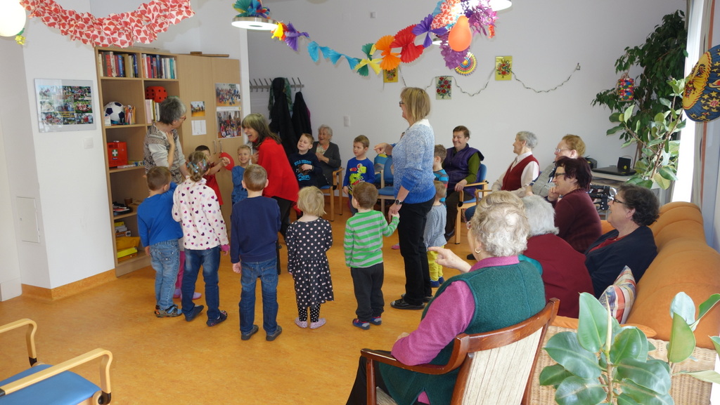 Ein „Faschingsbesuch“ von Trixis Kindergartengruppe fand am 22. Februar 2017 im Betreuten Wohnen statt. Und wie jedes Zusammenkommen, auf das sich jung und älter freuen, war es wieder schön!!