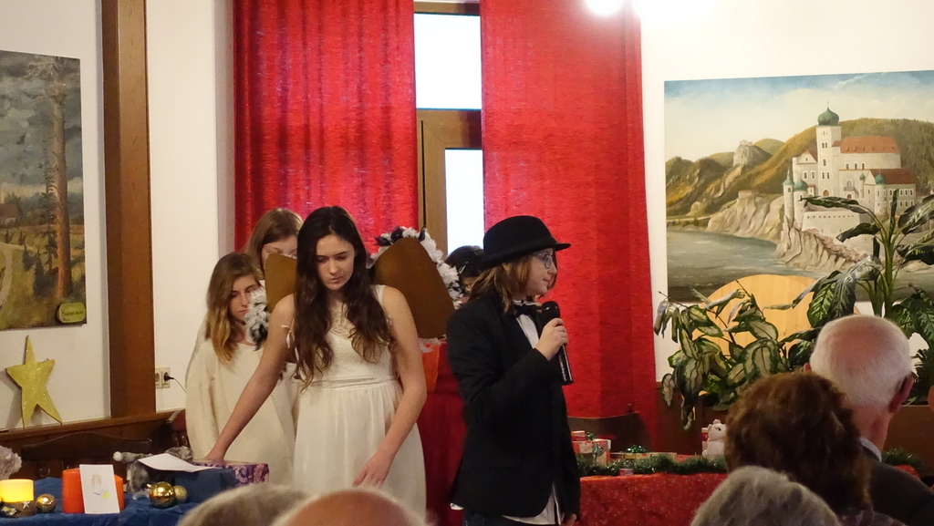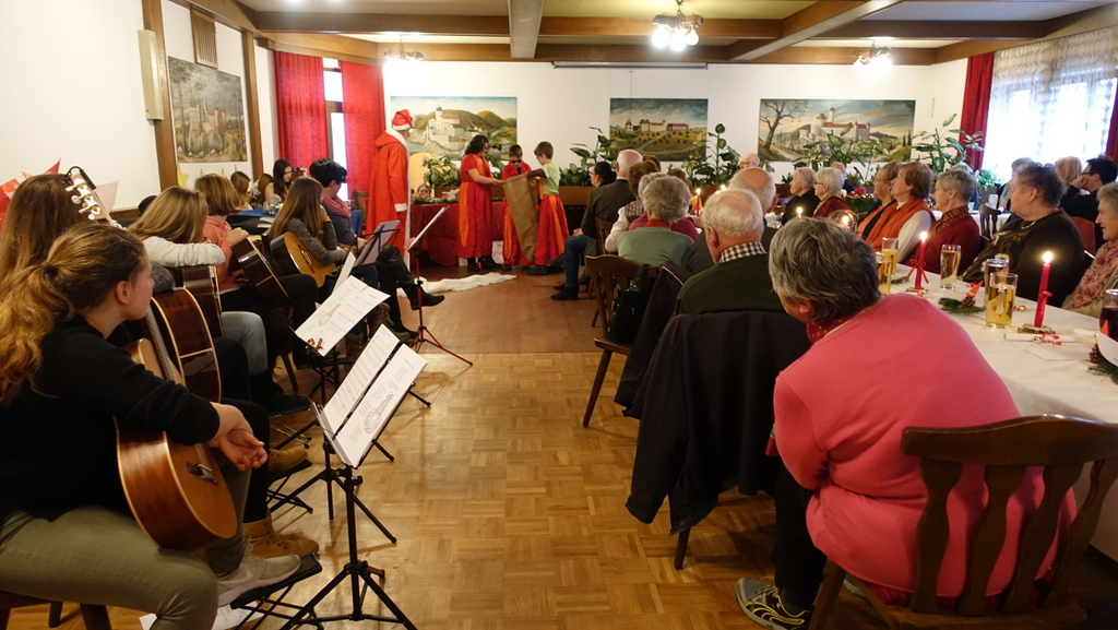 Wieder stand ein Adventnachmittag am Programm, und es war besonders schön unseren Hrn. Pfarrer und Neue Mittelschuldirektorin Anneliese Kerschner begrüßen zu dürfen, dass Frau Eva Timko für ihren erkrankten Mann einsprang und mit den Schülerinnen und Schülern der Musikschule Alpenvorland unsere Feier verschönerte, und dass SchülerInnen der Neuen Mittelschule uns mit einer Weihnachtsgeschichte, Maria Griessler, Erika Buchbauer und Leni Thoma mit Gedichten zum Schmunzeln brachten. Ihnen allen und Maria Jamöck und ihrem Team, die den Saal adventlich schmückten, ein großes Danke!!