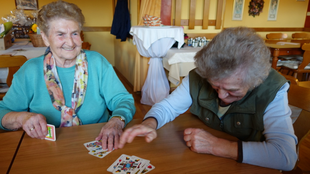 Bauernschnapsen:1.Tisch Sabine Perebner und Theresia Kreuzer