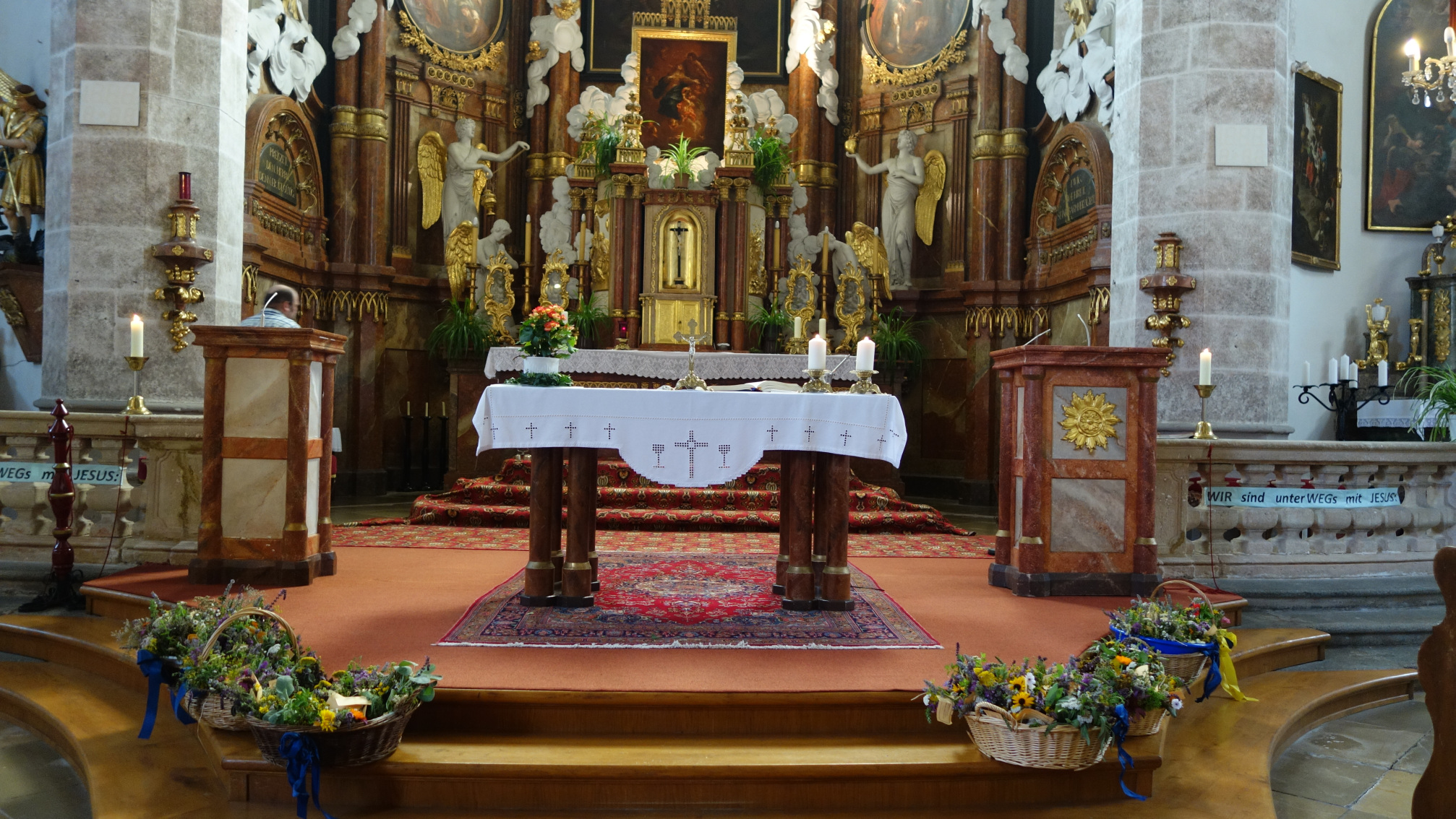 Nach den Hln. Messen am Maria Himmelfahrtstag, wurden die von Pater Wolfgang geweihten Sträußerln ausgeteilt und bereiteten wieder viel Freude!!