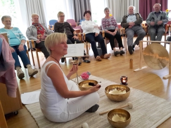 Beim „Letzten Mittwoch im Monat im Pfarrtreff“ am 25. September 2019, entführte uns Andrea Staudinger, die herzlich begrüßt wurde, auf eine „Klangreise“.